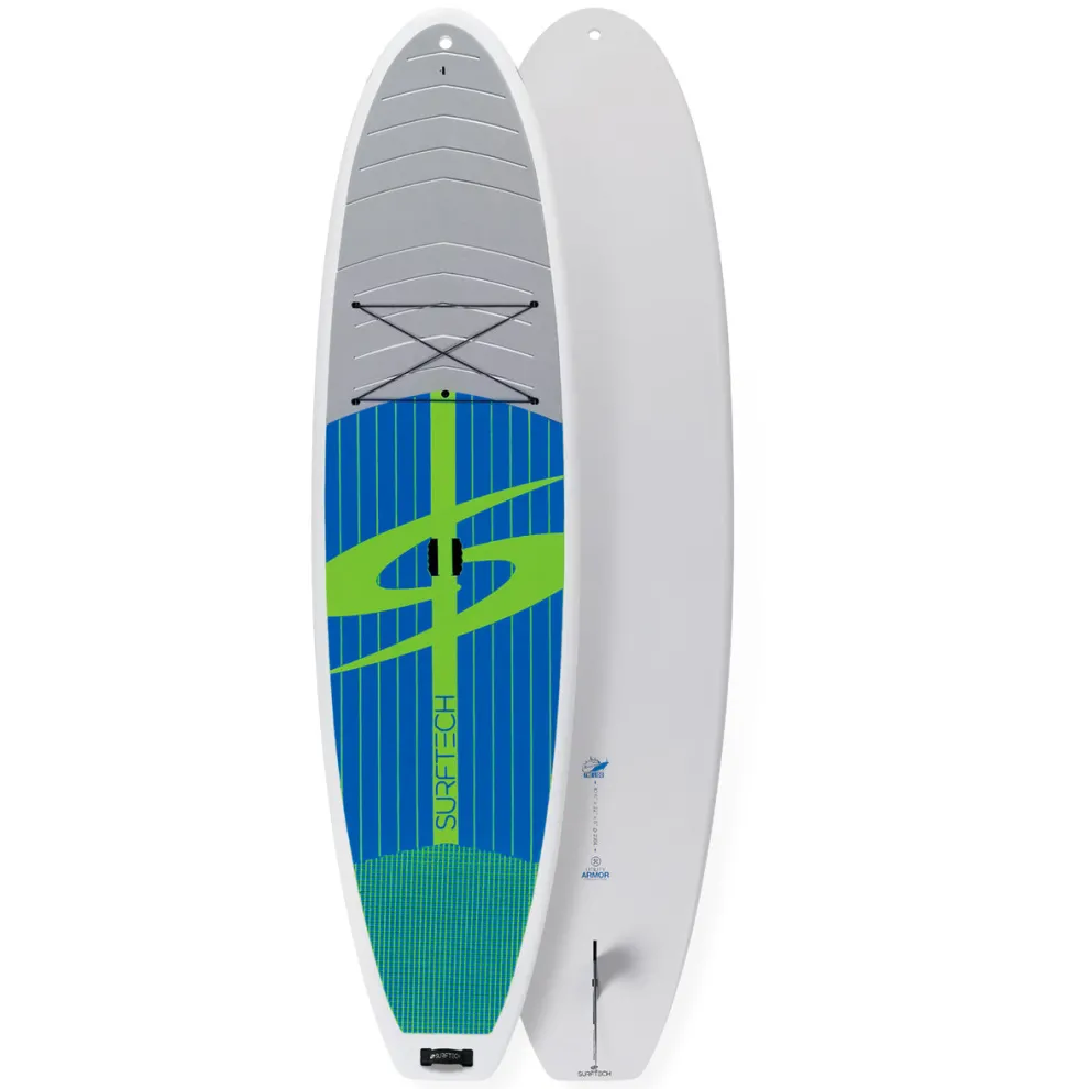 The Lido Stand Up paddleboard, constructed in UTILITY ARMOR, has a larger volume and full rails allowing paddlers to foat with ease in flat-water and small chop. The EPS foam, high-quality fberglass, epoxy resin, reinforced rails, and molded Utility Armor shell makes the Lido extremely durable SUP for rental facilities, beginners and families. The Lido also features a full DeckPad with cutouts, which reduces weight, deck tie downs, an integrated rental/ ledge handle for more comfortable carrying plus security, and a extra large security/leash plug providing two points to lock this board. IF YOUR LOOKING FOR HIGH QUALITY, DURABLE, and STABLE SUP. This is the Best SUP for you.