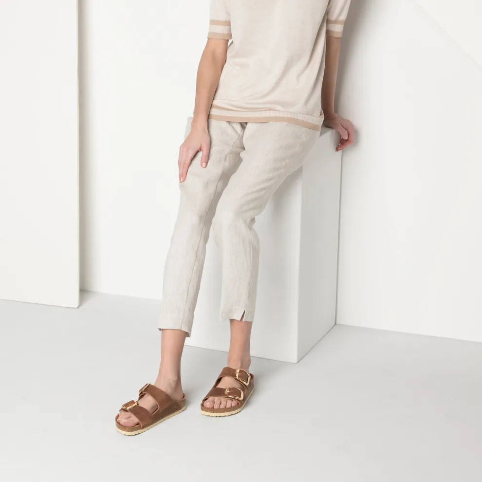The legendary two-strap design from BIRKENSTOCK with amplified buckle accent – the Arizona Big Buckle. The Big Buckle version features a large, elegant buckle creating a bold yet minimalist design. Shown in oiled nubuck leather.