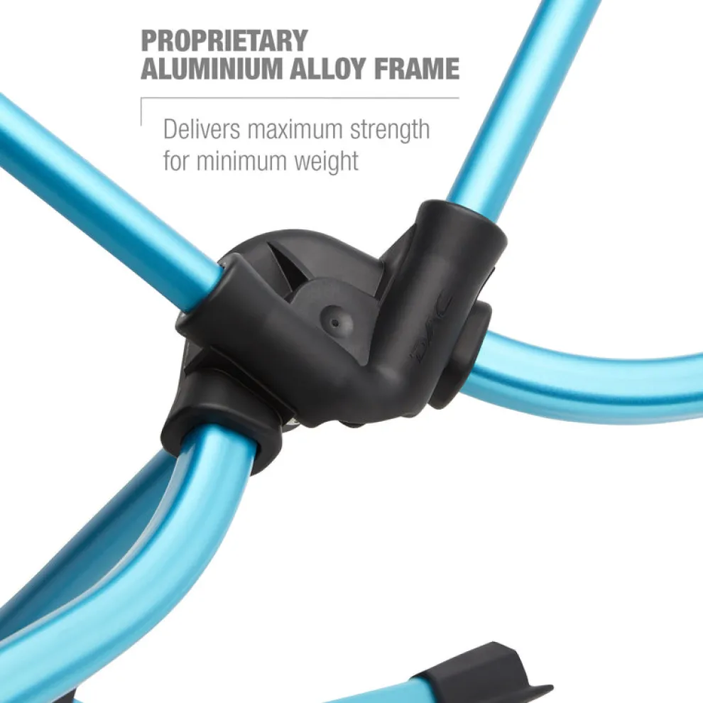 - The Beach Chair’s frame is built with ultra-lightweight and exceptionally strong DAC aluminum alloy poles. This advanced pole technology was developed for expedition-level backpacking tents and is trusted and relied on by the world’s most discerning adventurers. Helinox is the only furniture brand to use DAC aluminum alloy poles. Hubs and joining components are molded using a high-strength nylon resin that’s carefully engineered to achieve precise, solid, secure pole attachments.