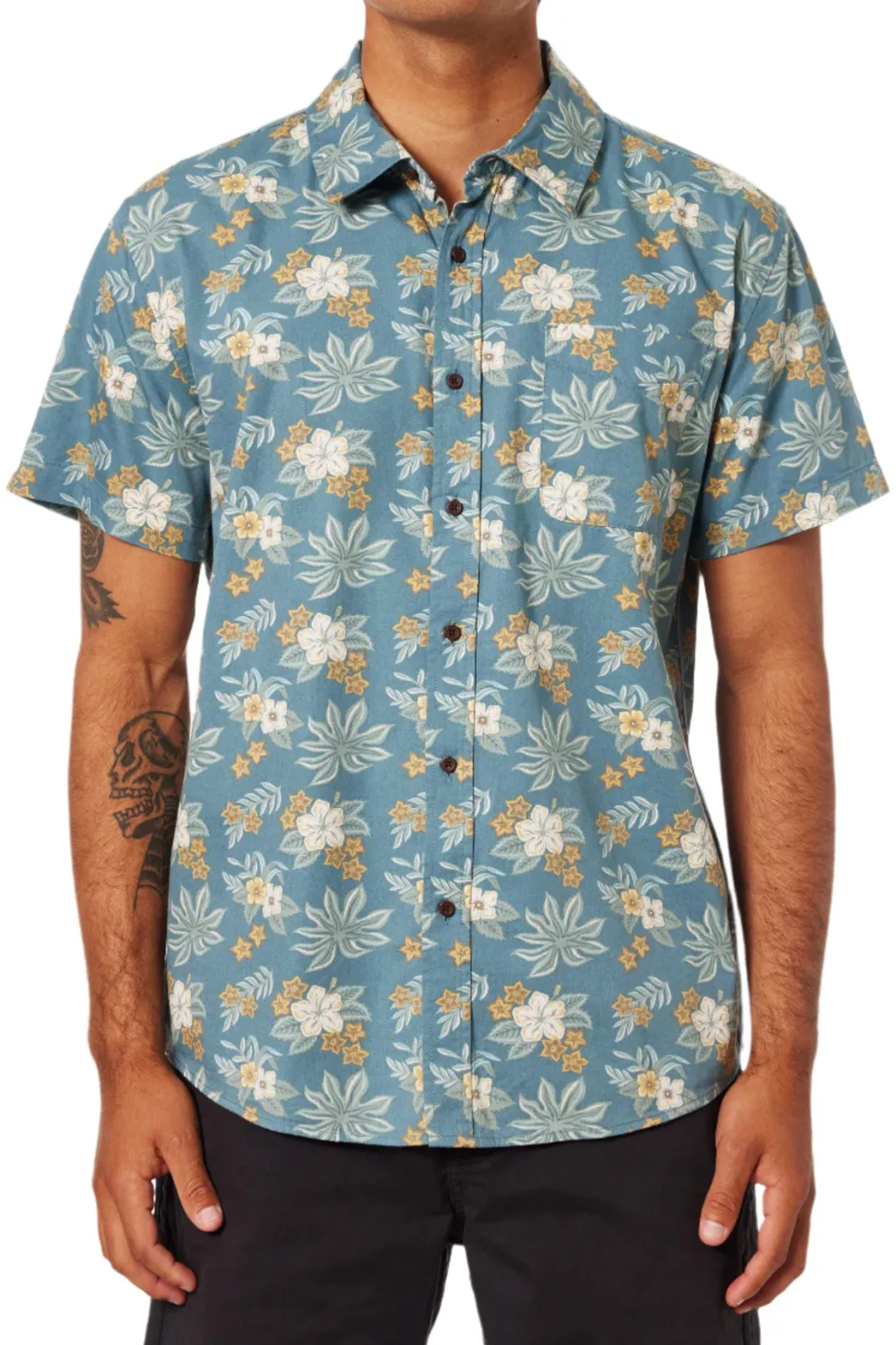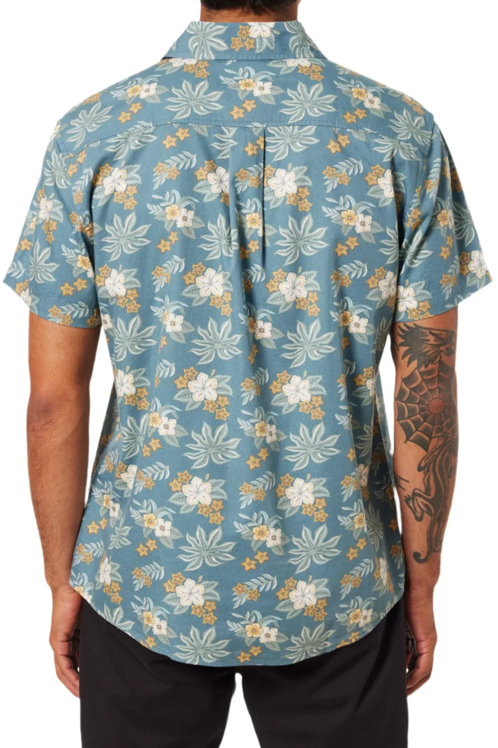 The Benji Shirt features a custom floral pattern inspired by the islands on a cotton blend fabric, perfect for any occasion.