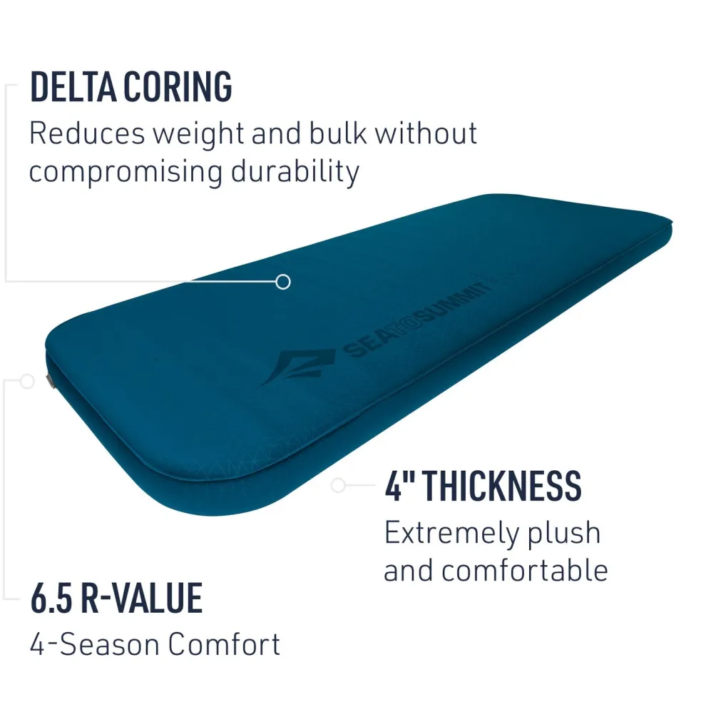 The ultimate in luxury for base campers, the Comfort Deluxe Self-Inflating Sleeping Mat features four inches of plush foam and a 30D stretch knit fabric on the upper surface for a luxurious warm feeling when it’s cool, and a cool feeling when it’s hot. The flip-over multi-function valve makes packing up the pad relatively easy because it prevents air from being drawn back in as it’s rolled up.