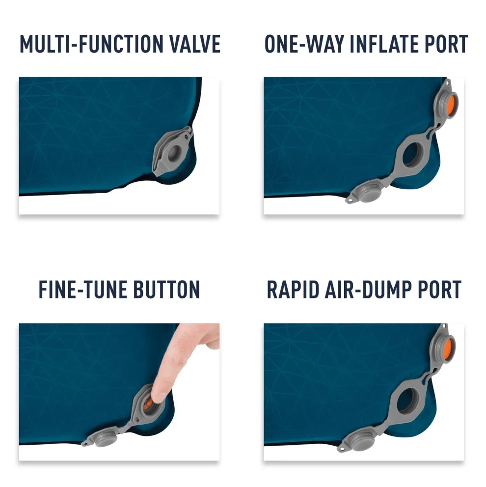 - Flip-over multi-function valve for fast and easy inflation, deflation and fine-tuning of air pressure.