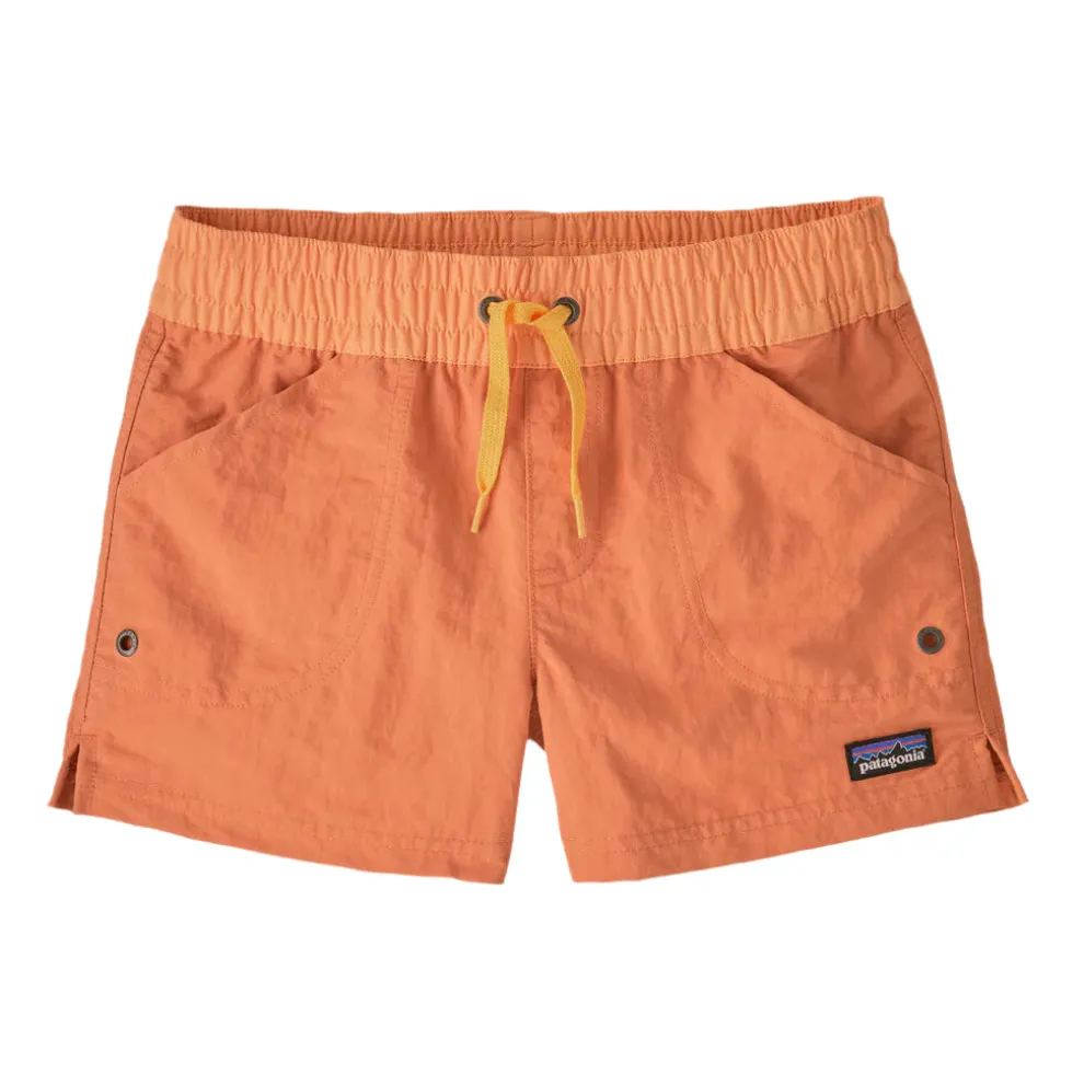 Fun and colorful, these kids’ water shorts have quick-drying fabric, self-draining pockets, a wide, elasticized waistband with an adjustable drawcord, and no liner. Built of lightweight NetPlus® 100% postconsumer recycled nylon faille made from recycled fishing nets to help reduce ocean plastic pollution; with a durable water repellent (DWR) finish made without intentionally added PFAS. Inseam is 3″.