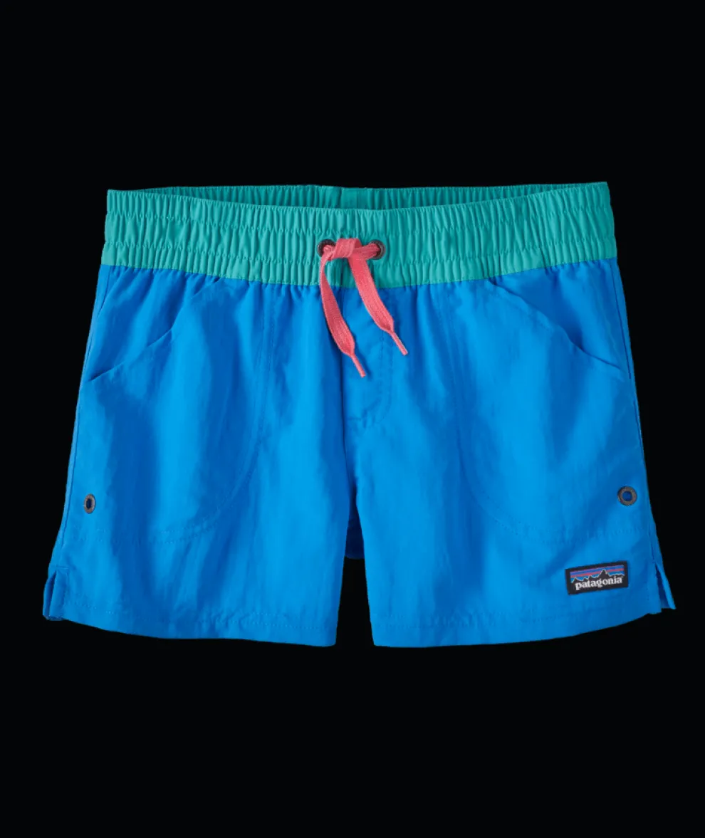 Fun and colorful, these kids’ water shorts have quick-drying fabric, self-draining pockets and a wide, elasticized waistband with an adjustable drawcord. Made of lightweight 100% recycled nylon with a DWR (durable water repellent) finish. Inseam is 3″.