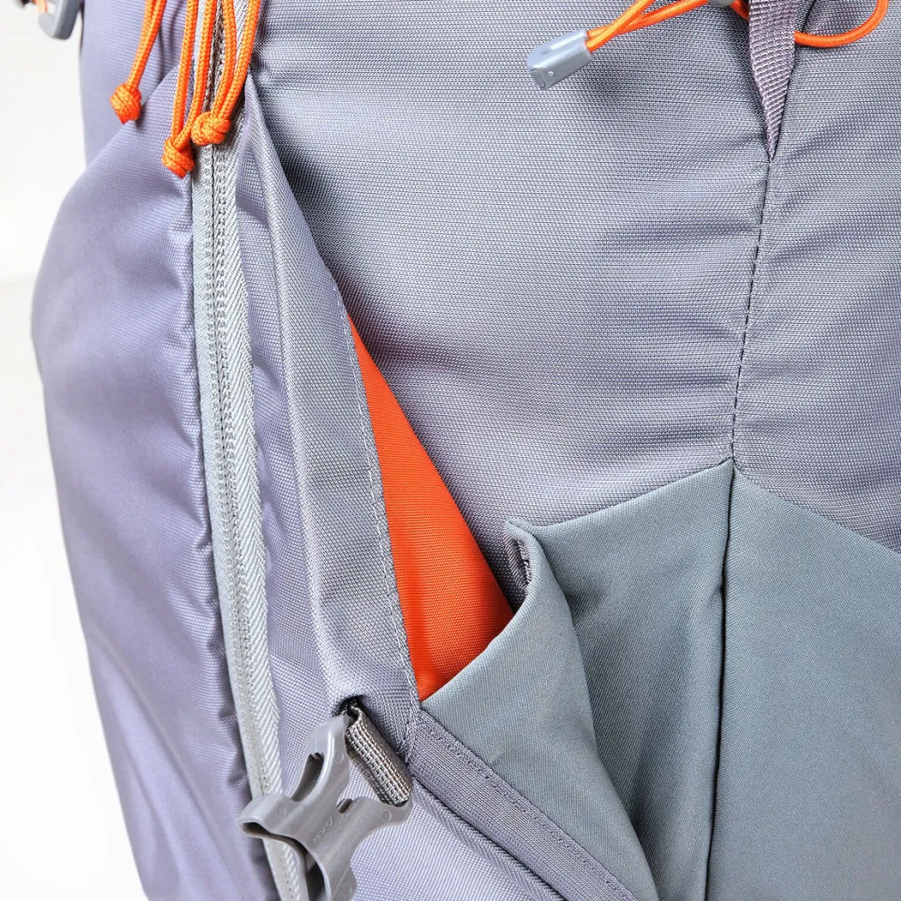 - Side stretch-woven pockets on the exterior for easy water bottle access