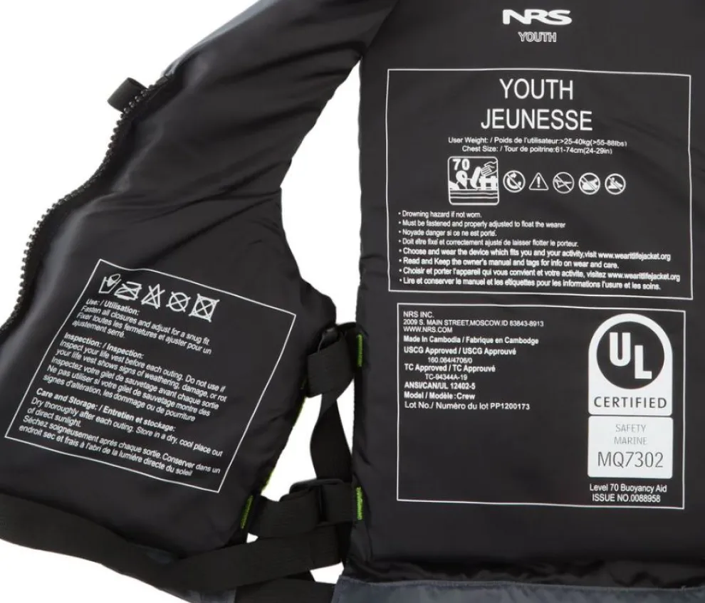 - The Youth Crew life jacket is rated for users weighing 55-88 pounds and having chest measurements of 24″-29″ (including apparel layers)