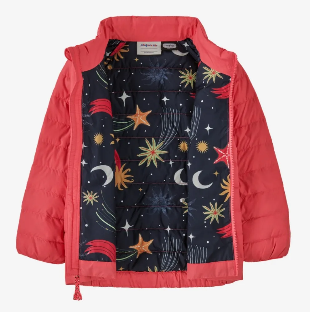 The Baby Down Sweater has a NetPlus 100% postconsumer recycled nylon ripstop shell made from recycled fishing nets to help reduce ocean plastic pollution; is insulated with warm, compressible 700-fill-power 100% Recycled Down (duck and goose down reclaimed from down products); and layers easily for warmth in colder conditions.