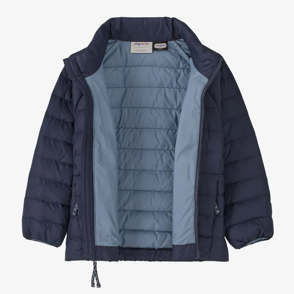 The Baby Down Sweater has a NetPlus 100% postconsumer recycled nylon ripstop shell made from recycled fishing nets to help reduce ocean plastic pollution; is insulated with warm, compressible 700-fill-power 100% Recycled Down (duck and goose down reclaimed from down products); and layers easily for warmth in colder conditions.