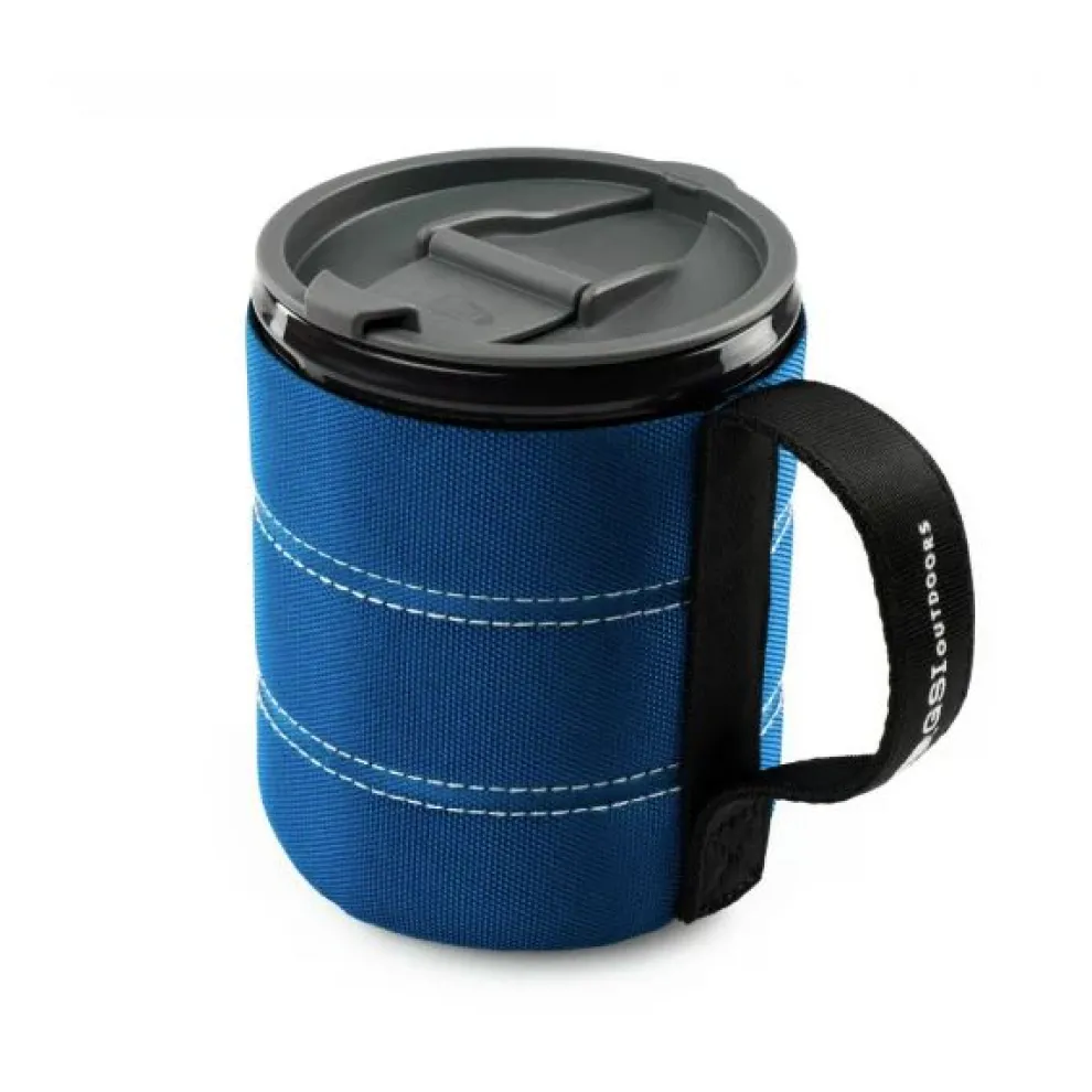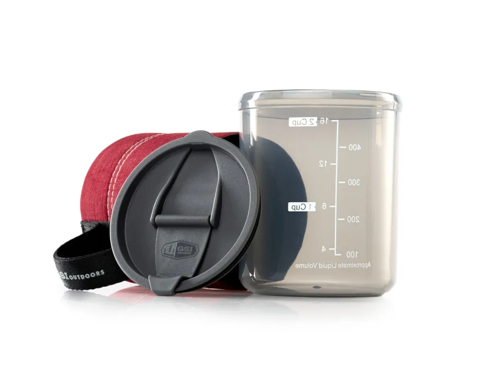 A sturdy webbing handle gives a great grip and collapses flush for compact storage in your pack. The Infinity Mug with graduations for easy measurement holds 17.5 fluid ounces but weighs just 3.5 ounces, making it light enough for even the choosiest, ounce-shaving through-hiker.