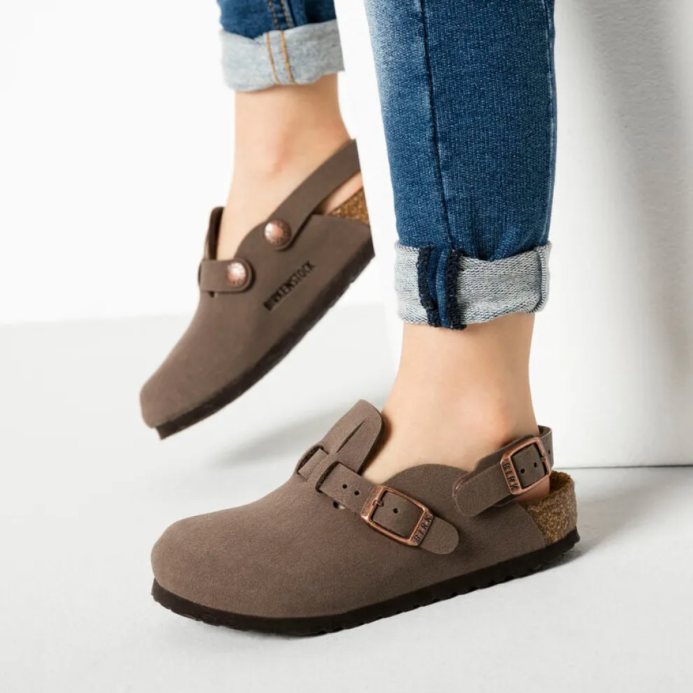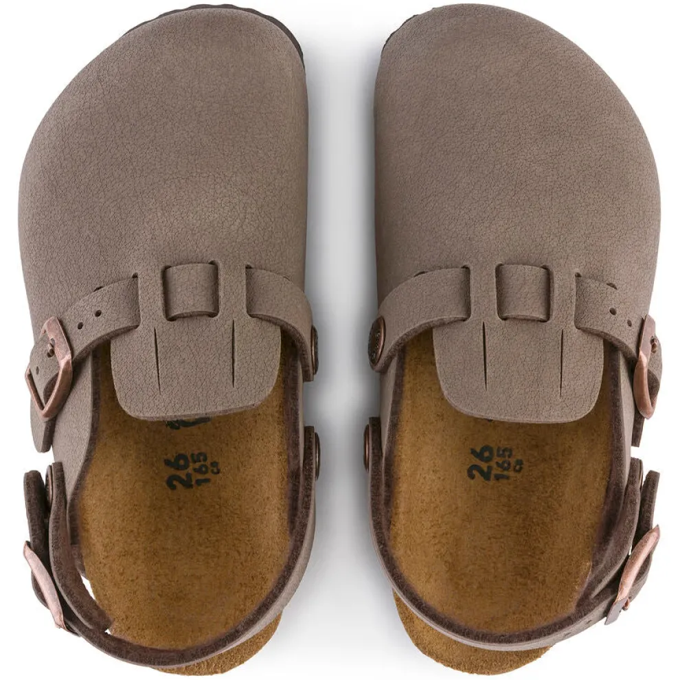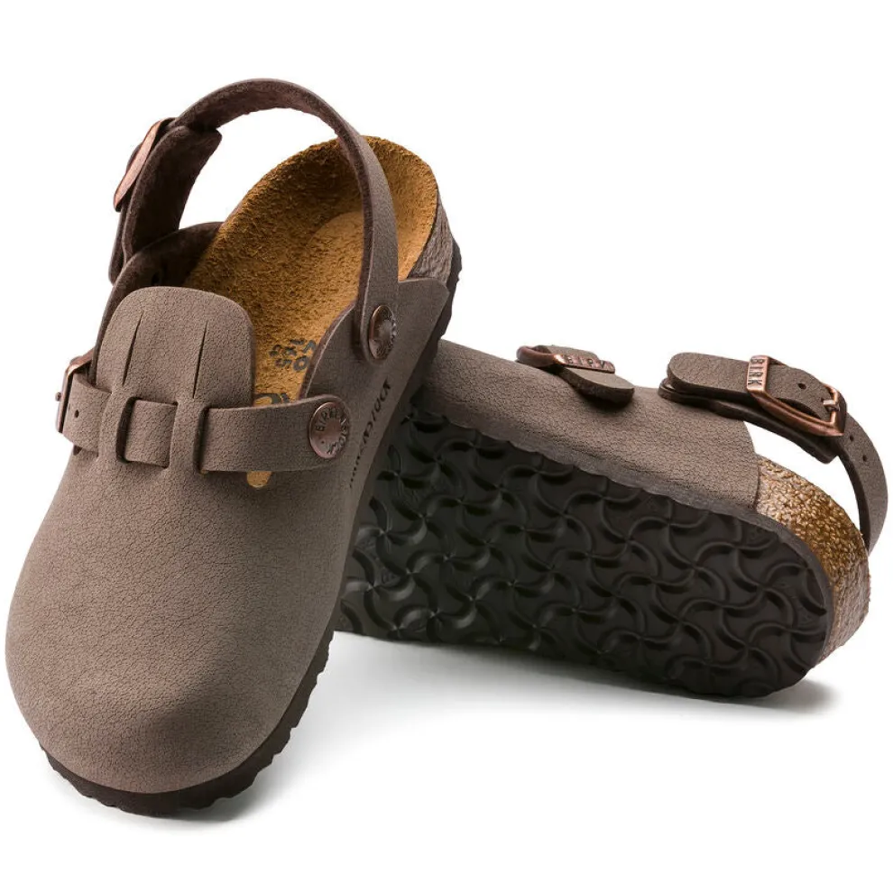 The BIRKENSTOCK Kay is a classic clog featuring a convertible backstrap with a buckle closure that can swivel back for a more secure fit. The upper is made from the skin-friendly, hard-wearing synthetic material Birkibuc®.