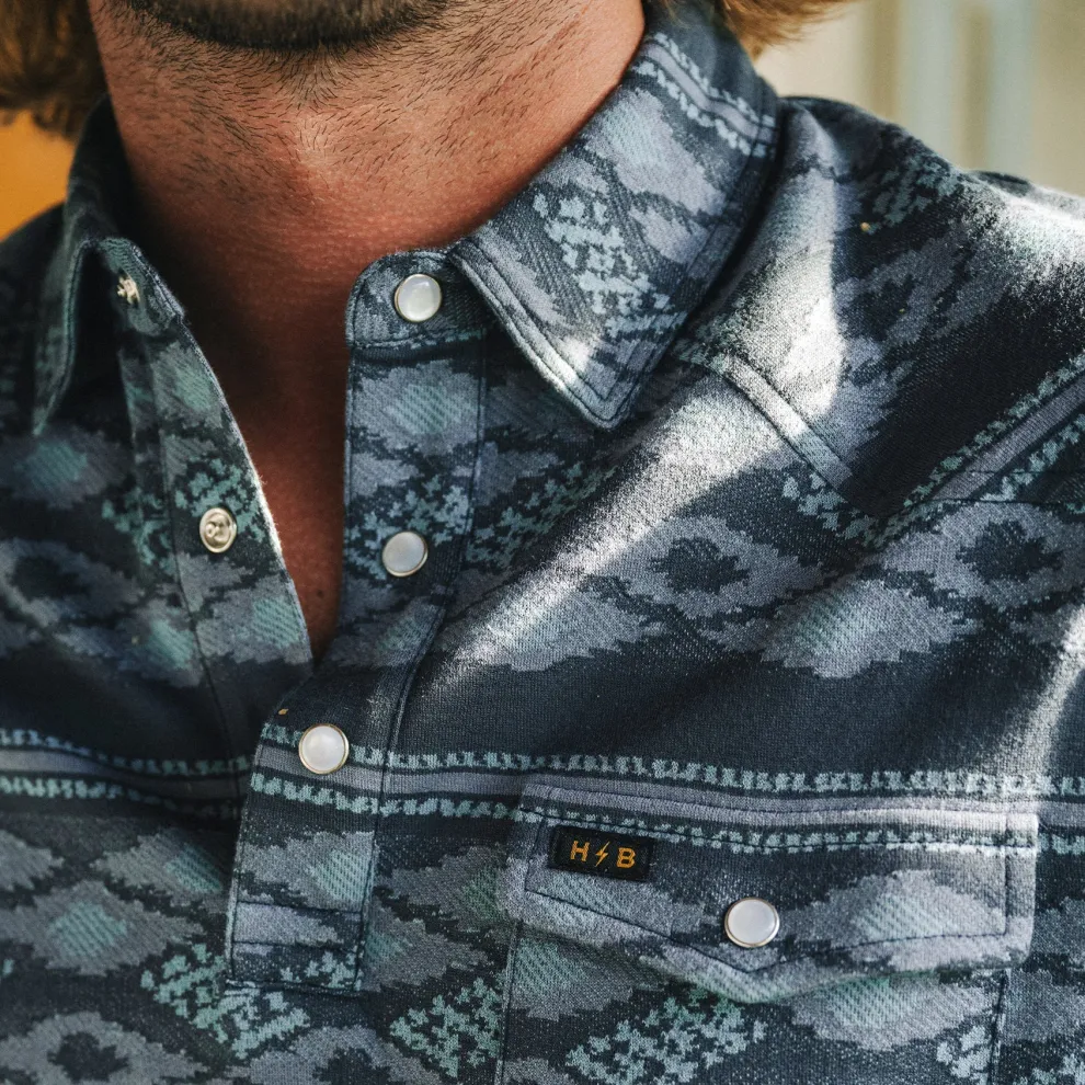 The Ranchero Jacquard Polo combines the pearl snap western essence of our Ranchero Polo with the vintage look of our popular jacquard tees and tanks. Made of super soft 100% cotton jacquard with a single snap pocket and straight hem for untucked wear. One of the best sellers in our Austin retail stores every season.