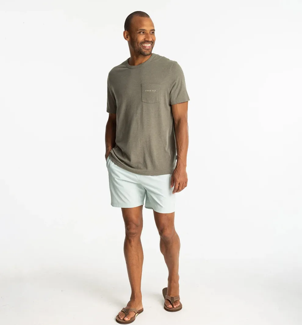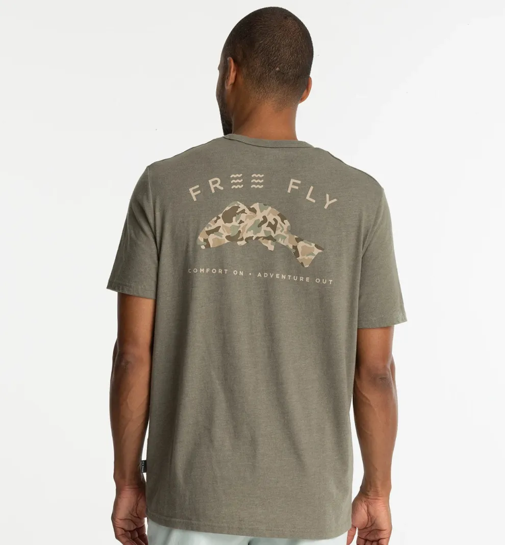 The Redfish Camo Pocket Tee has that same soft and worn-in feel of your favorite old tee, outfitted with an original Free Fly design. We created a custom camo print inspired by the shapes of the barrier islands that protect our backcountry, and combined it with our favorite local marsh critter. The left chest pocket has our subtle wordmark and makes a handy place to store your shades.
