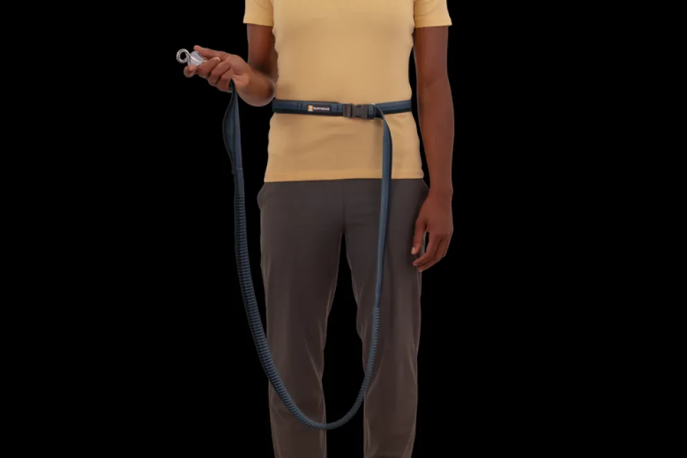 The Roamer is an adjustable stretch-webbing running dog leash that can be hand-held or worn around the waist for a dynamic hands-free leash experience. Wavelength stretch webbing keeps humans and canines connected while allowing an extended range for roaming and exploring. The user-friendly side release buckle, reinforced with an aluminum Uniloop, provides exceptional strength, while Ruffwear’s unique Talon Clip offers a strong and secure leash-to-collar attachment. Waist adjusts up to 48 in (122 cm).