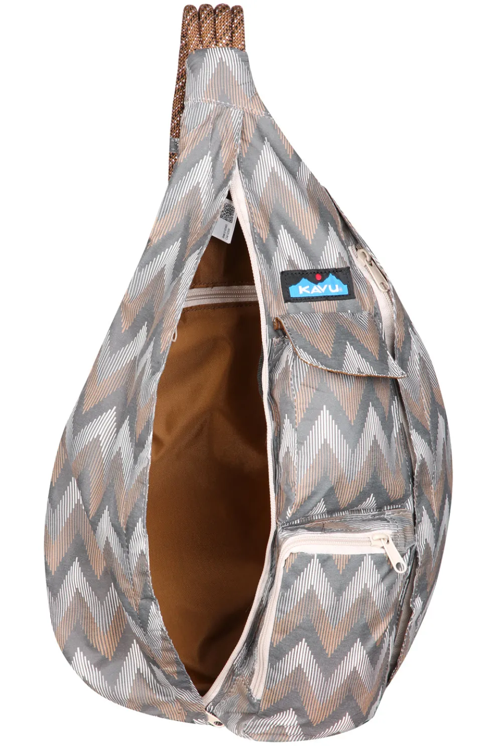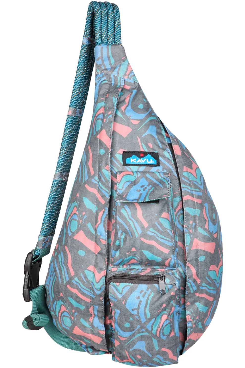 Fresh off the unicorn farm. Packed with the same features as your classic Rope Bag, but in a new 5oz 100% nylon taslan. The Rope Sack is KAVU Kool at its best. This bag will be your go to companion for all your KAVU Day shenanigans. Sling pack with adjustable rope shoulder strap, two vertical zip compartments, two key or cell phone pockets, padded back with KAVU embroidery.
