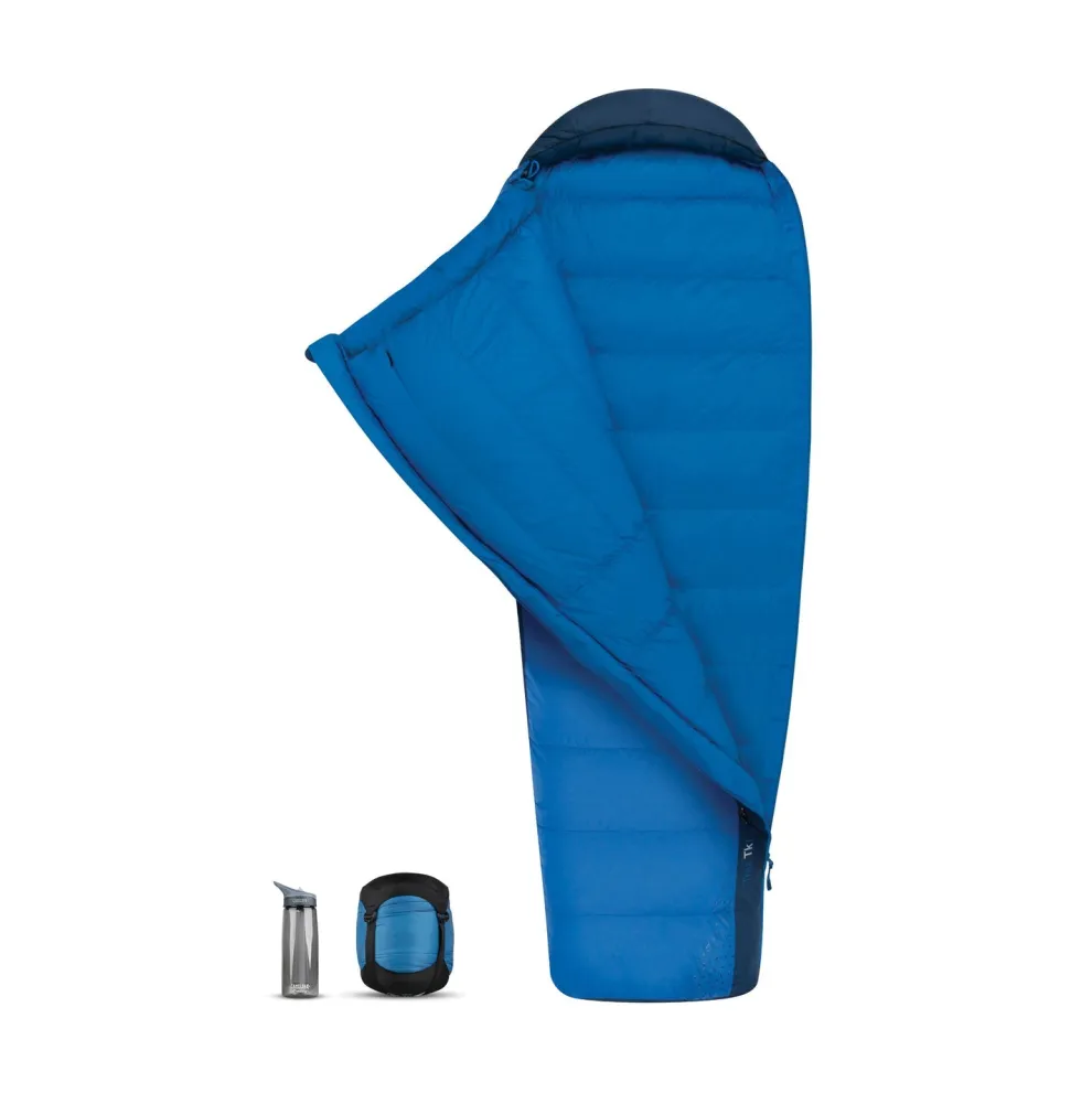 The Trek down sleeping bag brings the comfort of a tapered-rectangular mummy shape and the versatility of a dual-zip ventilation system to wherever your travels may take you. The full-length side zipper and secondary foot box zipper allow you to increase ventilation or open the Trek completely flat like a comforter, and the quality down will keep you warm and snug on chilly nights.