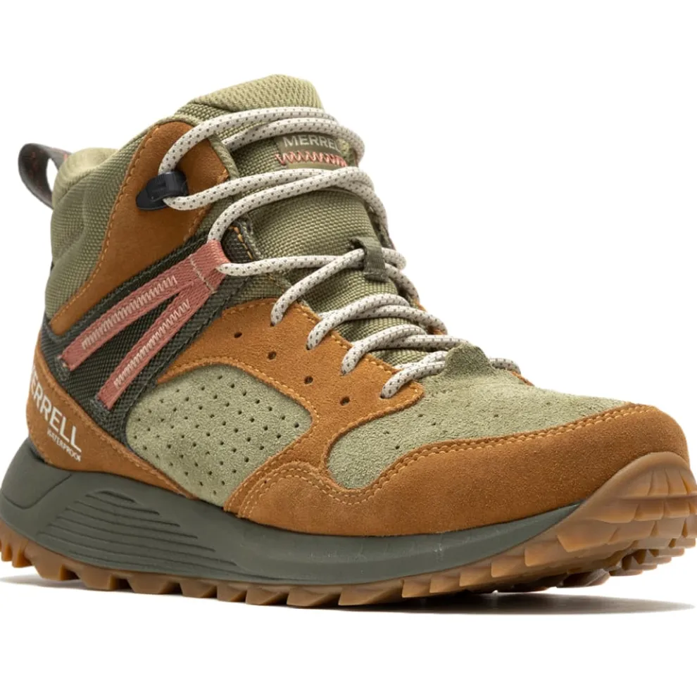 Travel any trail with the Merrell Wildwood Mid LTR Waterproof hiking boots. The Wildwood comes with an elasticized lace-up closure for an adjustable fit, a round-toe design, and a brand patch on the tongue.