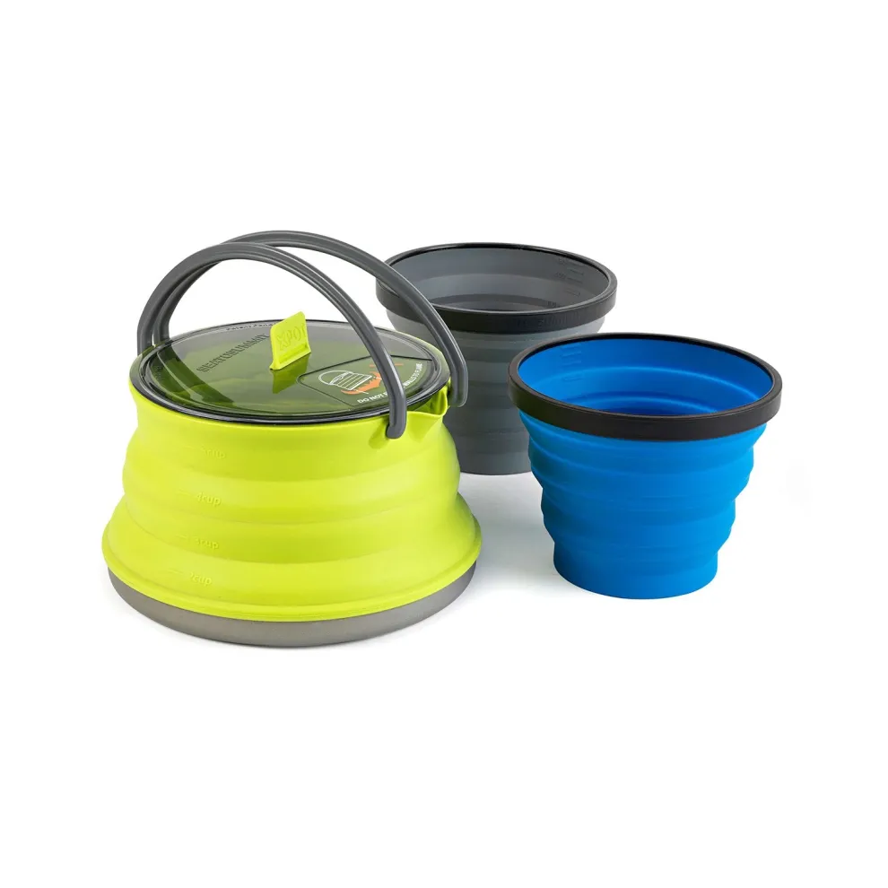 Collapsible cookware in the X-Set™ 11 is a game-changer in how we pack for outdoor adventures. Using the same award-winning innovative, space-saving, collapsible and functional features as in the X-Pot™, the X-Kettle™ is made from a hard-anodized aluminum base with collapsible silicone sidewalls, and glass-reinforced Nylon 66 handles. This set will free up space in your pack for other essentials and includes the X-Kettle™ and two X-Mugs. It makes it the perfect two-person set for your morning hydration routine. Additionally, the X-Brew™ Coffee Dripper will nest inside this set.