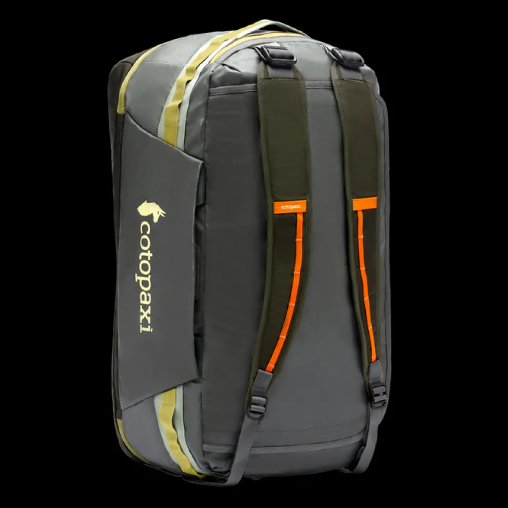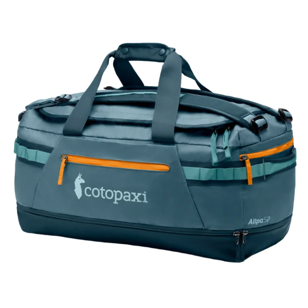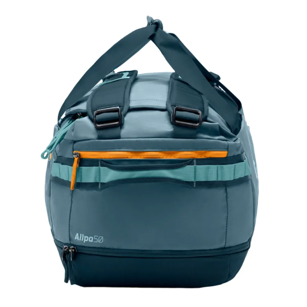 Our best-selling Allpa has transformed into a burly travel duffel that carries like a backpack whenever you please. This pack is available in two sizes, and the 50L is the smaller size. Made from TPU-coated 1000D polyester and lightweight, more durable 840D ballistic nylon paneling.