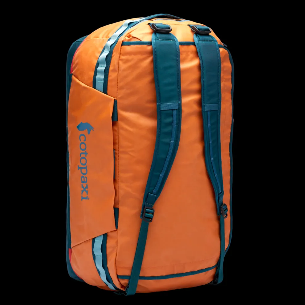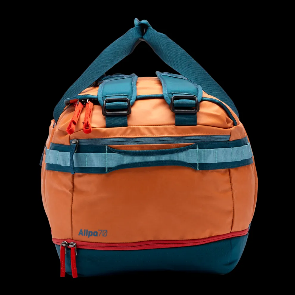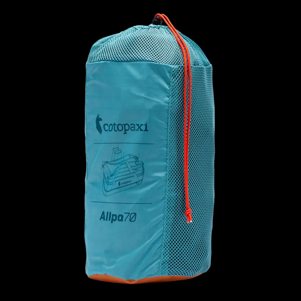 Our best-selling Allpa has transformed into a burly travel duffel that carries like a backpack whenever you please. This pack is available in two sizes, and the 70L is the bigger size. Made from TPU-coated 1000D polyester and lightweight, more durable 840D ballistic nylon paneling.