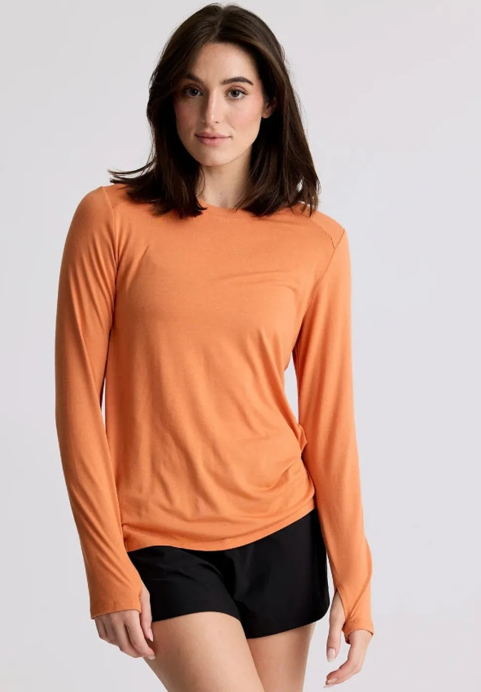 The Bamboo Shade Long Sleeve II is the second generation of this women’s style, now with an updated and super dialed fit. Same indulgently soft and stretchy fabric. Same impressive 50+ UPF rating. Naturally odor-resistant, it’s perfectly suited for travel or an active lifestyle. It’s also temperature-regulating, so it’ll keep you that just-right temp when the forecast (or the airplane A.C.) throws you for a loop. The weight of the fabric has a really nice, flattering drape to it, and you’ll probably start to wonder why all clothes can’t just be made from this stuff.