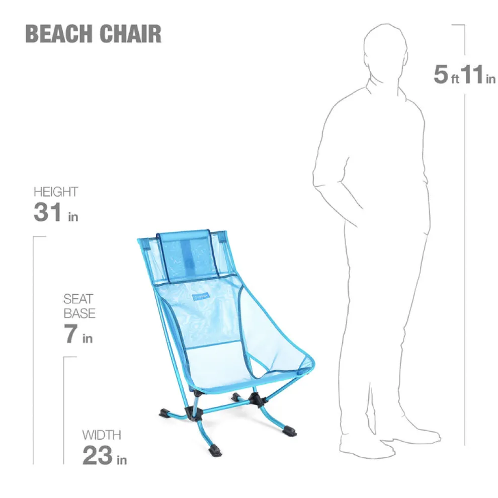 - Sit, toes in the sand, and listen to the waves. Our Beach Chair sits securely on the sand no sinking so you stay supported and comfortable. And you can go beyond the shore relax at the park, campsite, or festival. Its tall back and vented seat give you comfort that’s at home on the turf as it is at the surf.