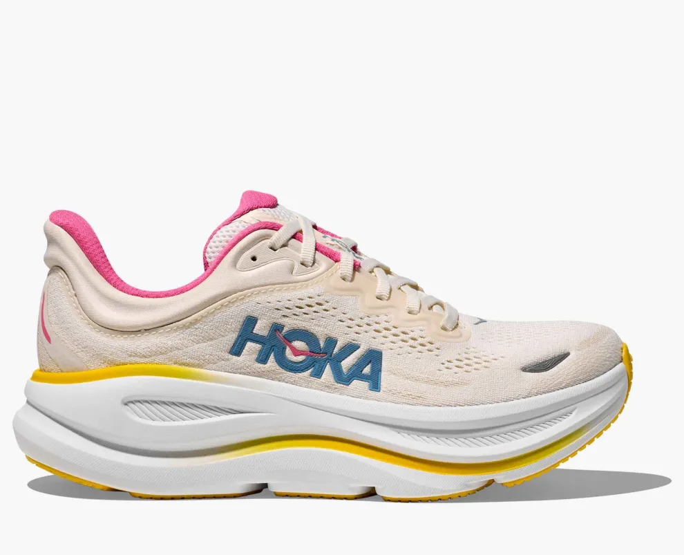 One of the hardest working shoes in the HOKA lineup, the Bondi 9 delivers peak plushness for everyday miles. Overhauled from top to bottom, we’ve increased the stack height and added a new premium foam midsole to deliver that soft, resilient ride that’s become synonymous with the Bondi. Elevated with a 3D molded collar and structured knit upper with zonal breathability, this ultra-cushioned cult favorite has been finished with Durabrasion rubber to combat high wear zones.