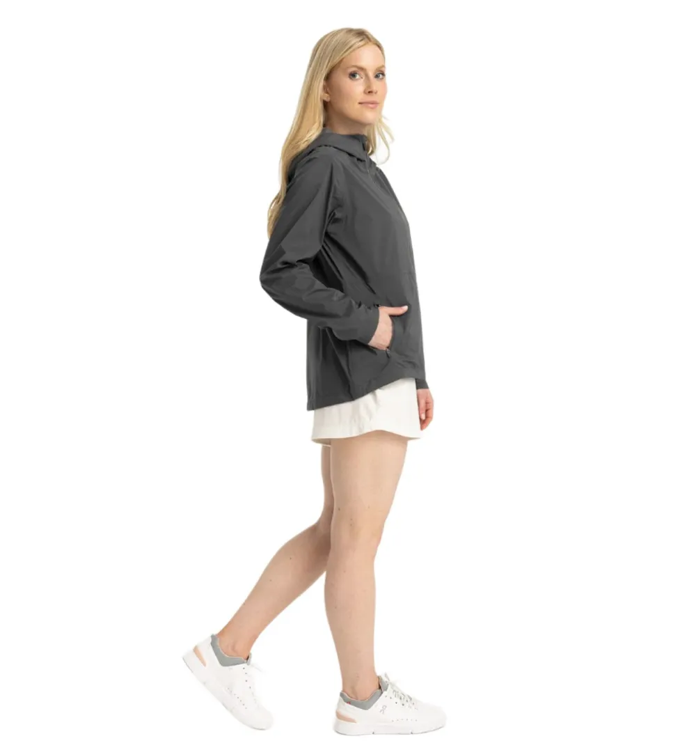 Meet the whisper-quiet, 100% waterproof Cloudshield technology. The Cloudshield Jacket gives you full waterproof protection, without the noisy, trash-bag like feel of most rain jackets. The fully seam taped, waterproof 3-layer (3L) shell features a quiet, matte face fabric, breathable waterproof membrane, and ultra-soft tricot backer for ultimate next-to-skin comfort. Structured, yet soft, you’ll question its waterproofness the first time you try itbut reach for it every time the sky opens up. Layer it over our Lightweight Fleece or make it your go-to travel shell.