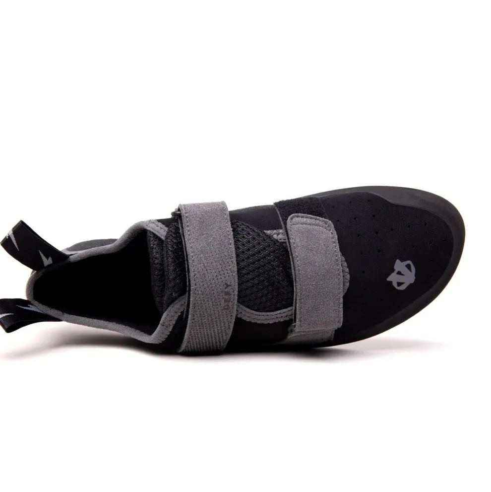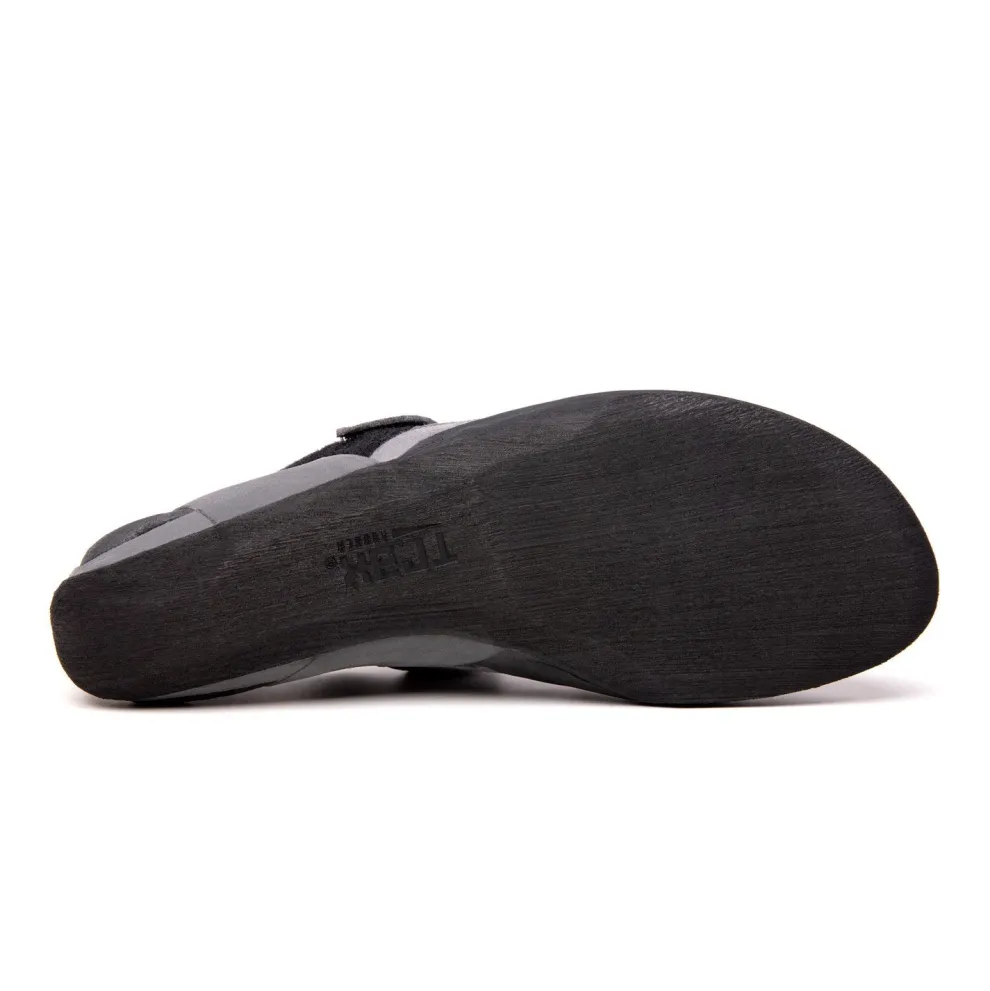 Intended for climbers that want a comfortable fit and a modest amount of performance. The all-around single layer vegan synthetic shoe is perforated to ensure breathability and keep the shoe tight over time. The 1 mm full-length midsole paired with a slightly asymmetric toe profile will give you a sturdy enough platform to edge on vertical faces or provide enough confidence for your off vertical endeavors.