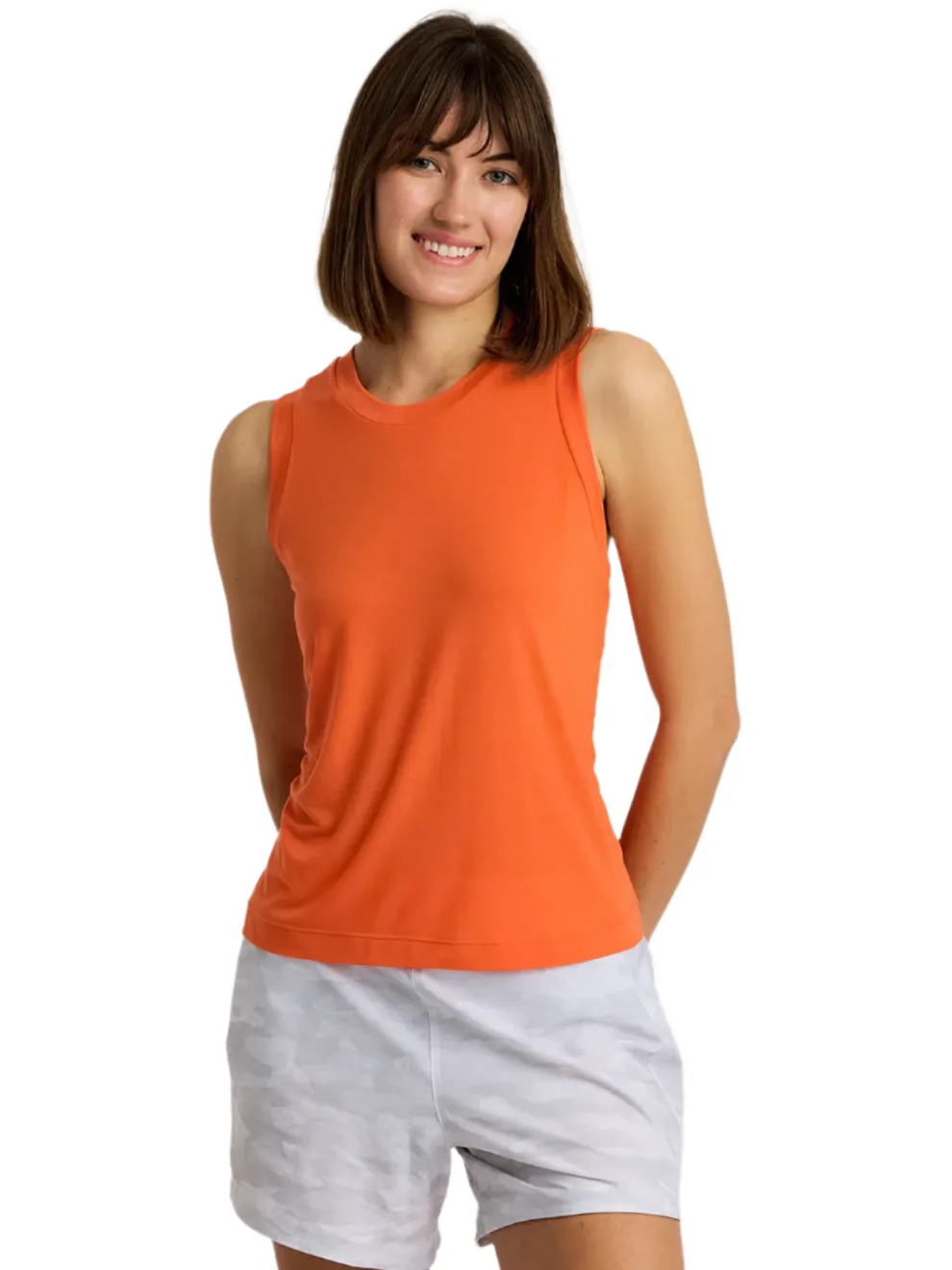 Meet the ultra-lightweight version of Free Fly’s Elevate fabric. Same durability and lightning-fast dry timesnow in a featherweight TENCEL design for your most epic hot-weather adventures. Crafted with four-way stretch, drire-lease tech, and awesome breathability, the Elevate Lightweight Tank was designed to keep you cool and dry on the hottest, muggiest days. The perfect tank for workouts, it also makes a sporty everyday option thanks to a boxy, slightly cropped fit.