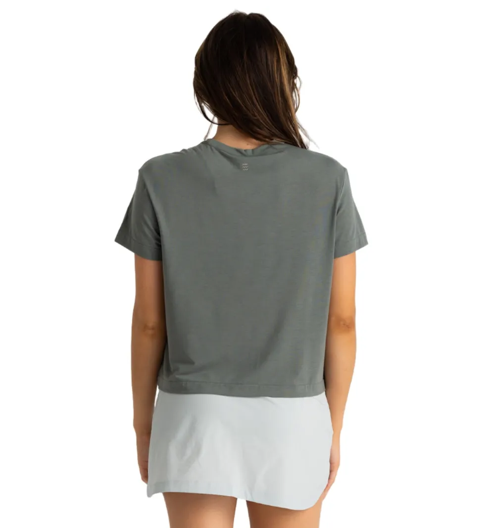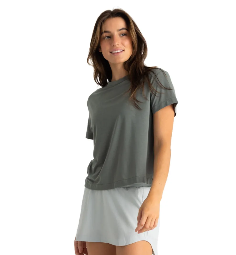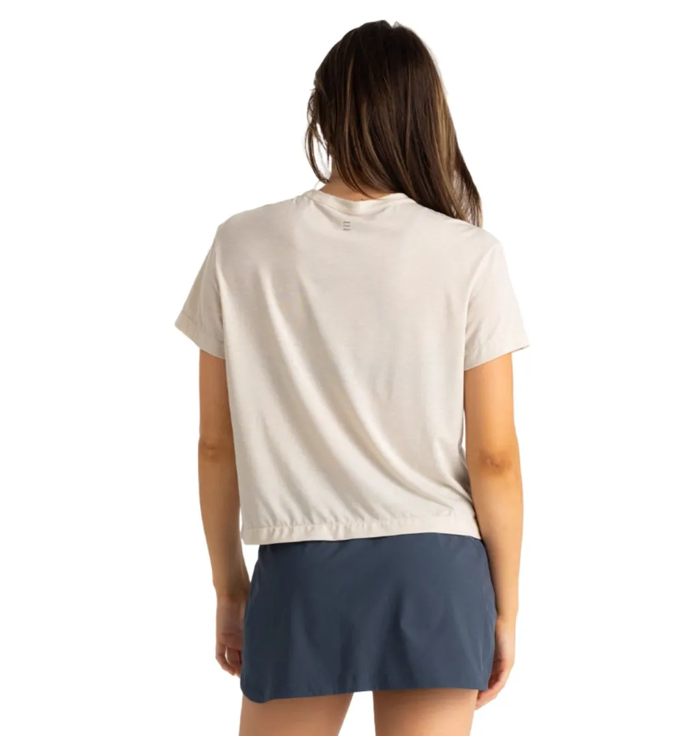 Meet the ultra-lightweight version of Free Fly’s original Elevate fabric. Same durability and lightning-fast dry timesnow in a featherweight TENCEL design for your most epic hot-weather adventures. Crafted with four-way stretch, dri-release tech, and awesome breathability, the Elevate Lightweight Tee was designed to keep you cool and dry on the hottest, muggiest days. The perfect tee for workouts, it also makes a sporty everyday option thanks to a boxy, slightly cropped fit.