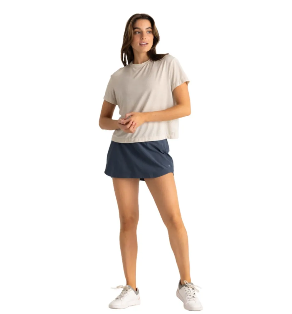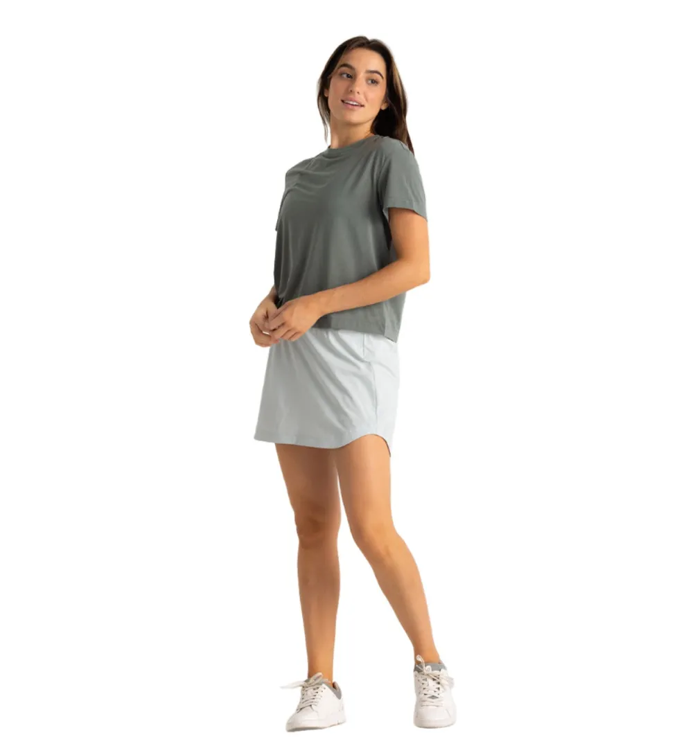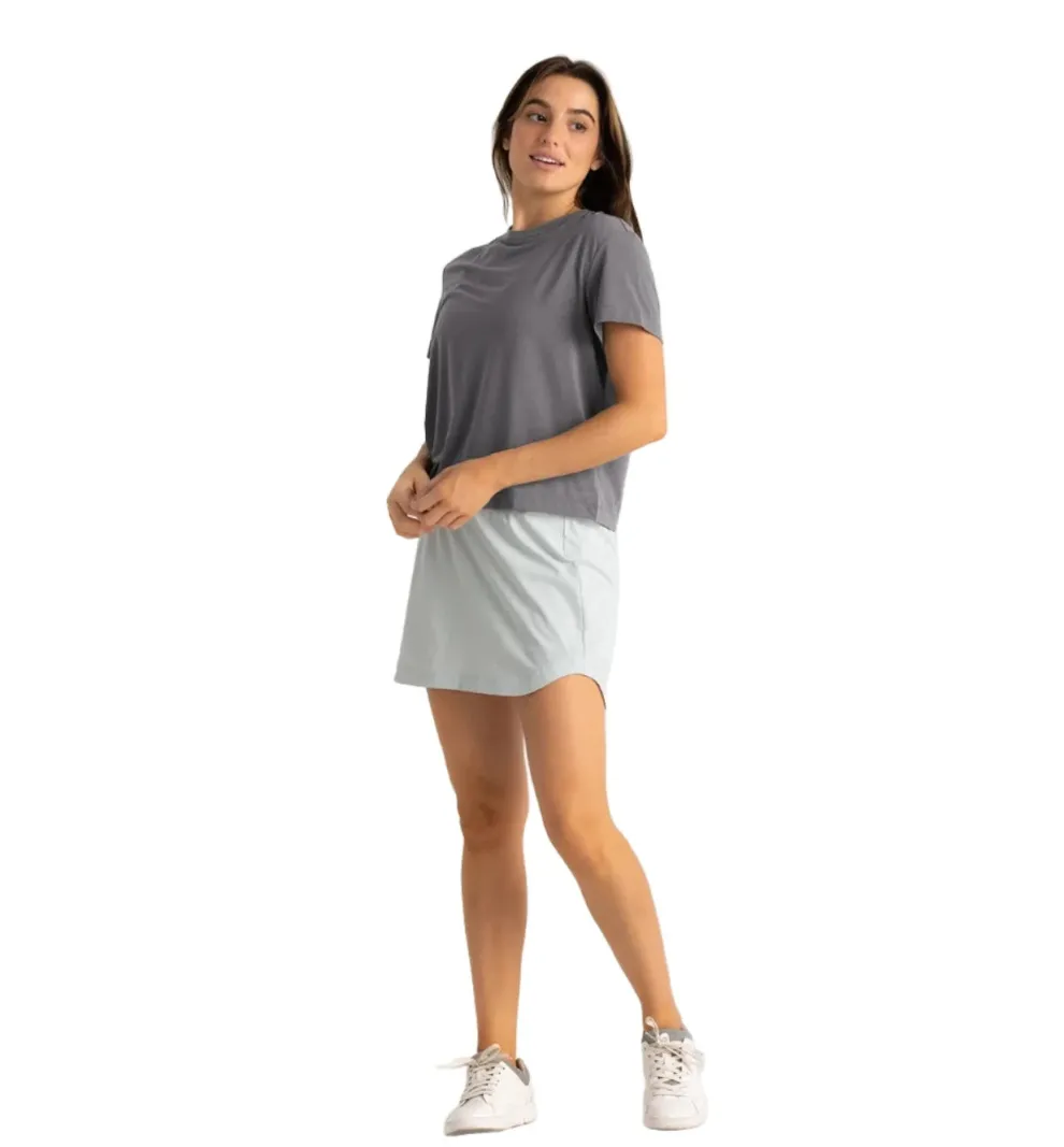 Meet the ultra-lightweight version of Free Fly’s original Elevate fabric. Same durability and lightning-fast dry timesnow in a featherweight TENCEL design for your most epic hot-weather adventures. Crafted with four-way stretch, dri-release tech, and awesome breathability, the Elevate Lightweight Tee was designed to keep you cool and dry on the hottest, muggiest days. The perfect tee for workouts, it also makes a sporty everyday option thanks to a boxy, slightly cropped fit.