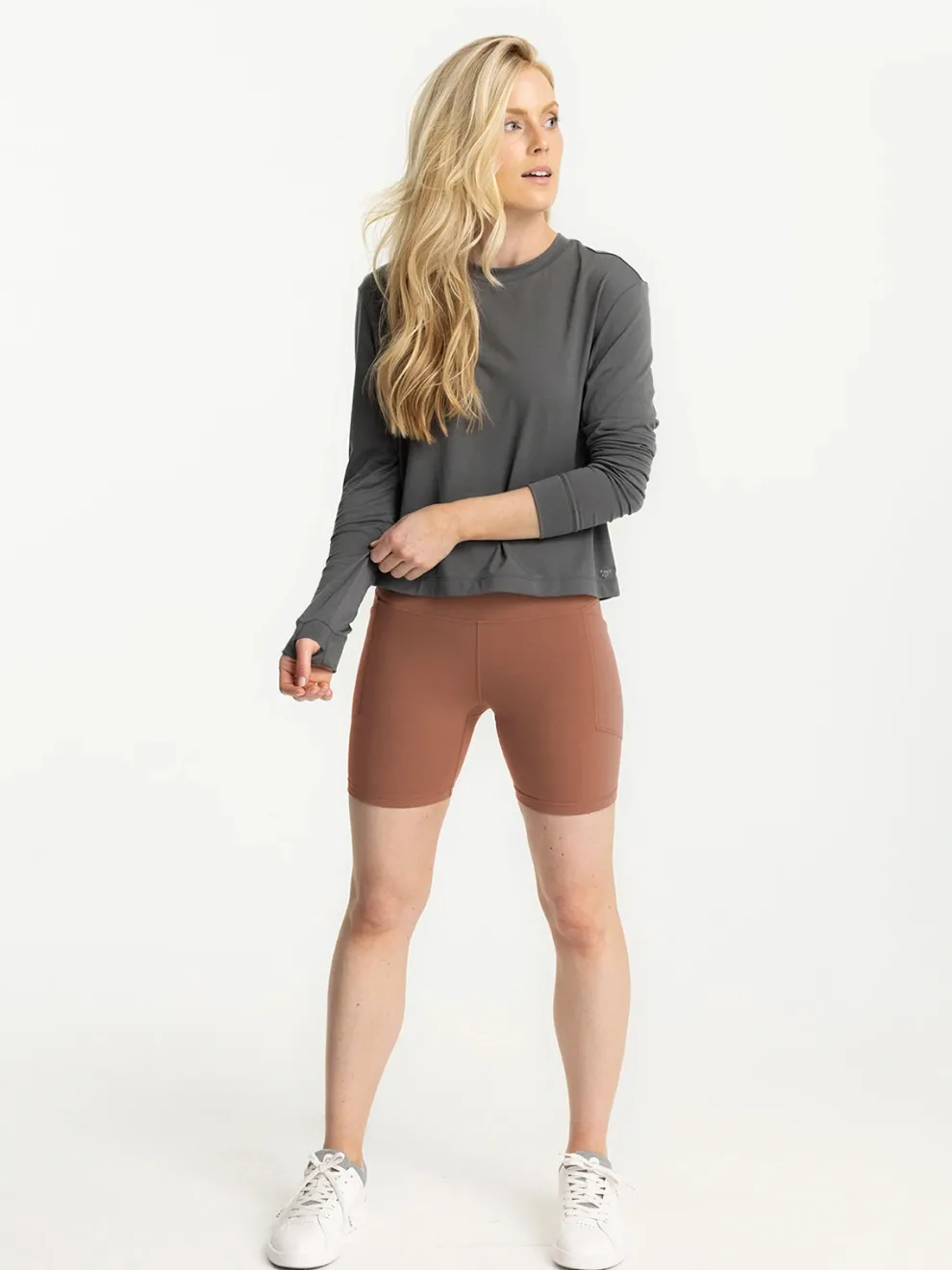 The Elevate Long Sleeve looks like an easy, everyday basic, but acts like your most impressive performance go-to. Our innovative Elevate fabric boasts next-level softness combined with a bit more durability thanks to a unique lyocell blend. Outfitted with thumbholes, drirelease® tech, and topped off with a UPF 30+ rating, it gives you awesome performance and understated style. Reach for it when you’re trying to keep cool, comfy, and outta the sun.