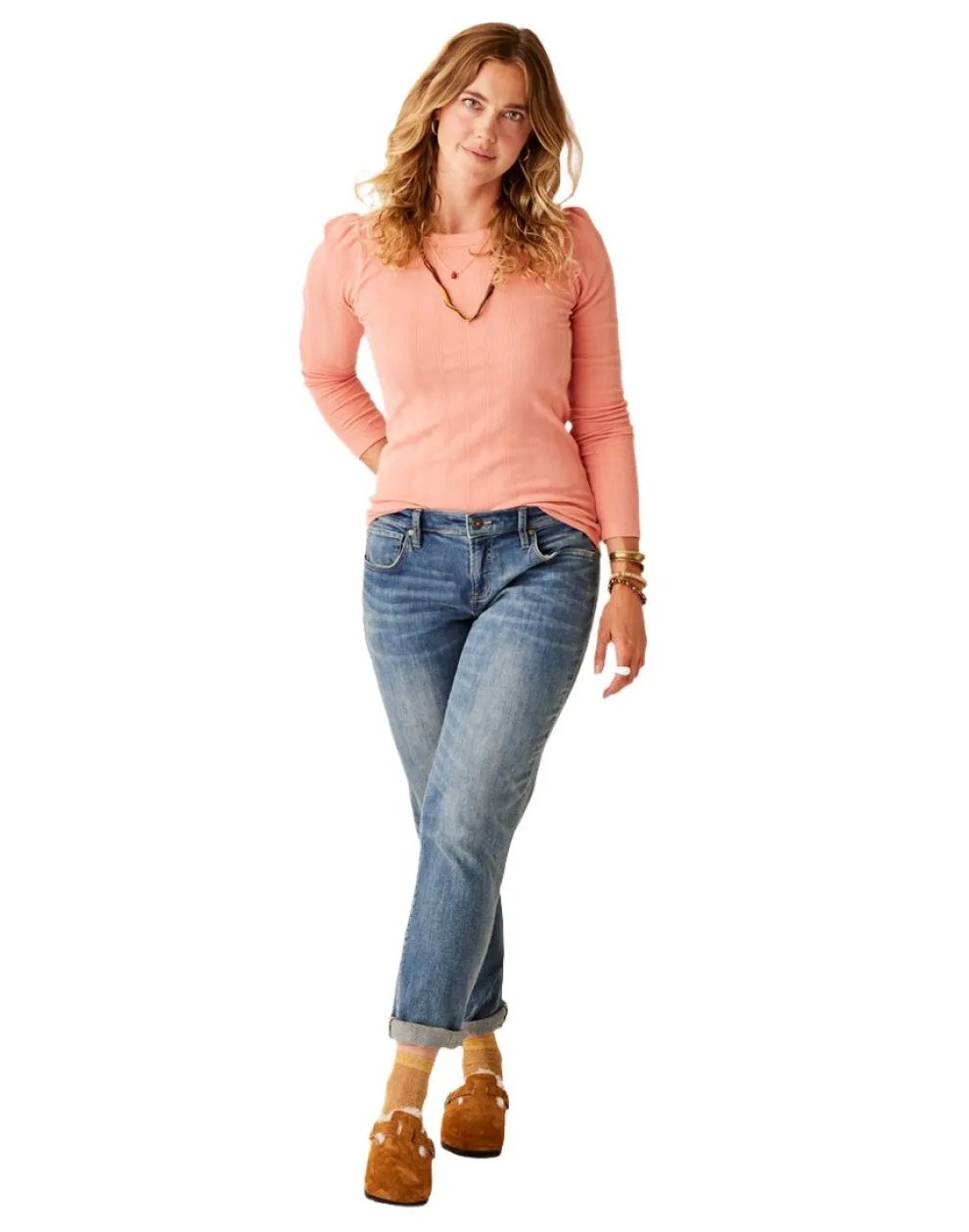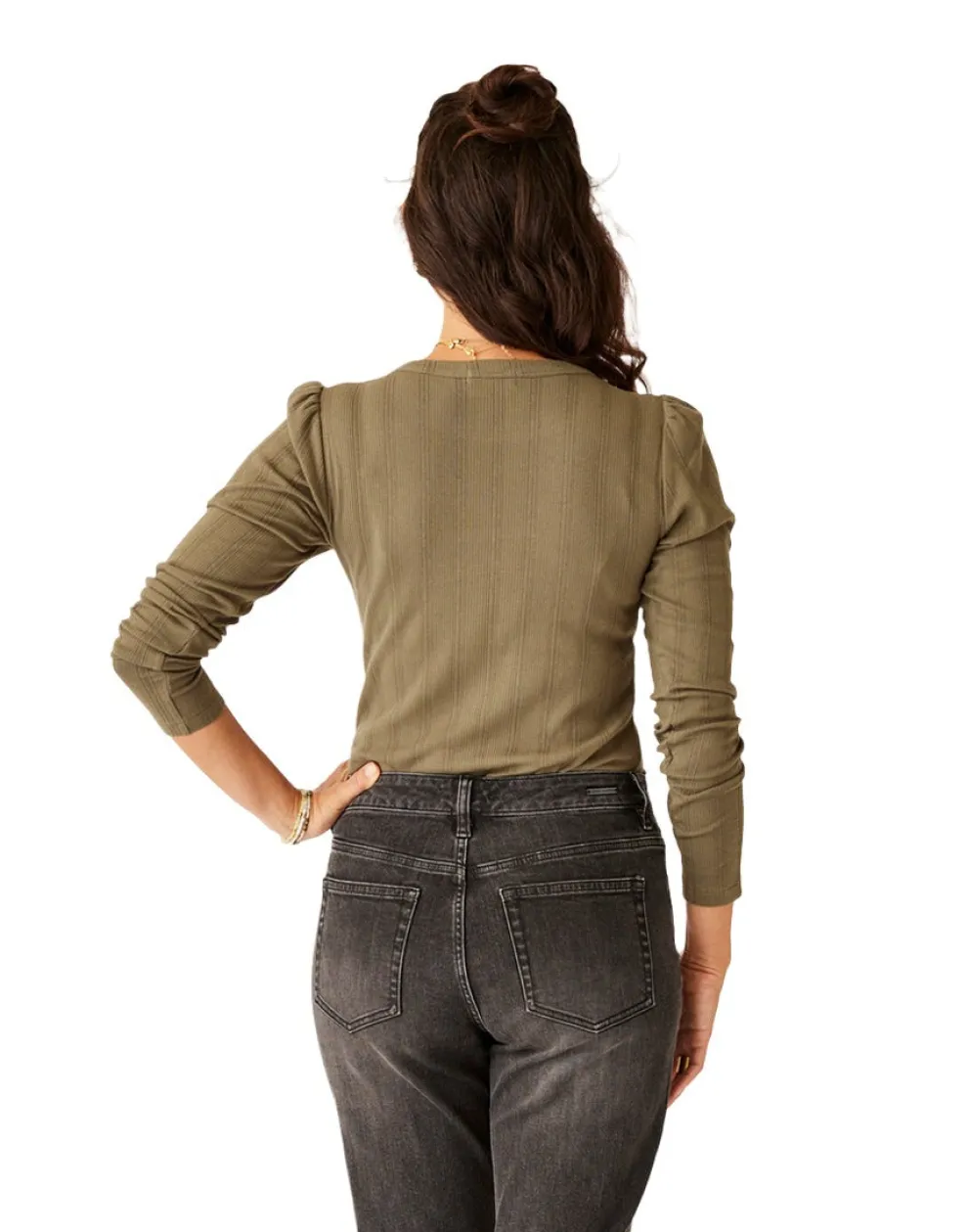 If ever there was a top to love, the Ever Top would be your huckleberry. This classic crewneck goes with anything, while rocking our organic cotton pointelle rib fabric, variegated pointelle pattern and subtle puff sleeve.