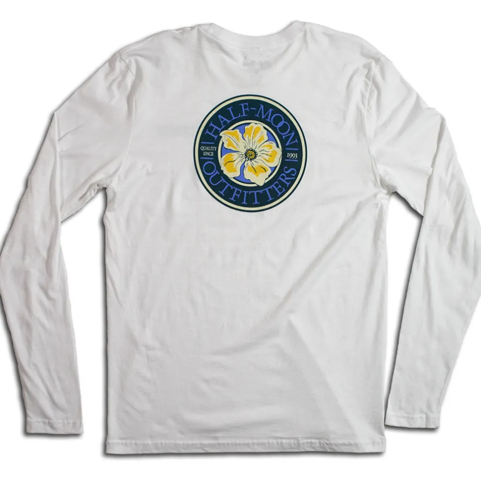 The Half-Moon Outfitters Long Sleeve Flower Logo T-Shirt is going to be your new favorite tee. These shirts are soft, have a classic fit and are the best looking t-shirts avaliable anywhere.