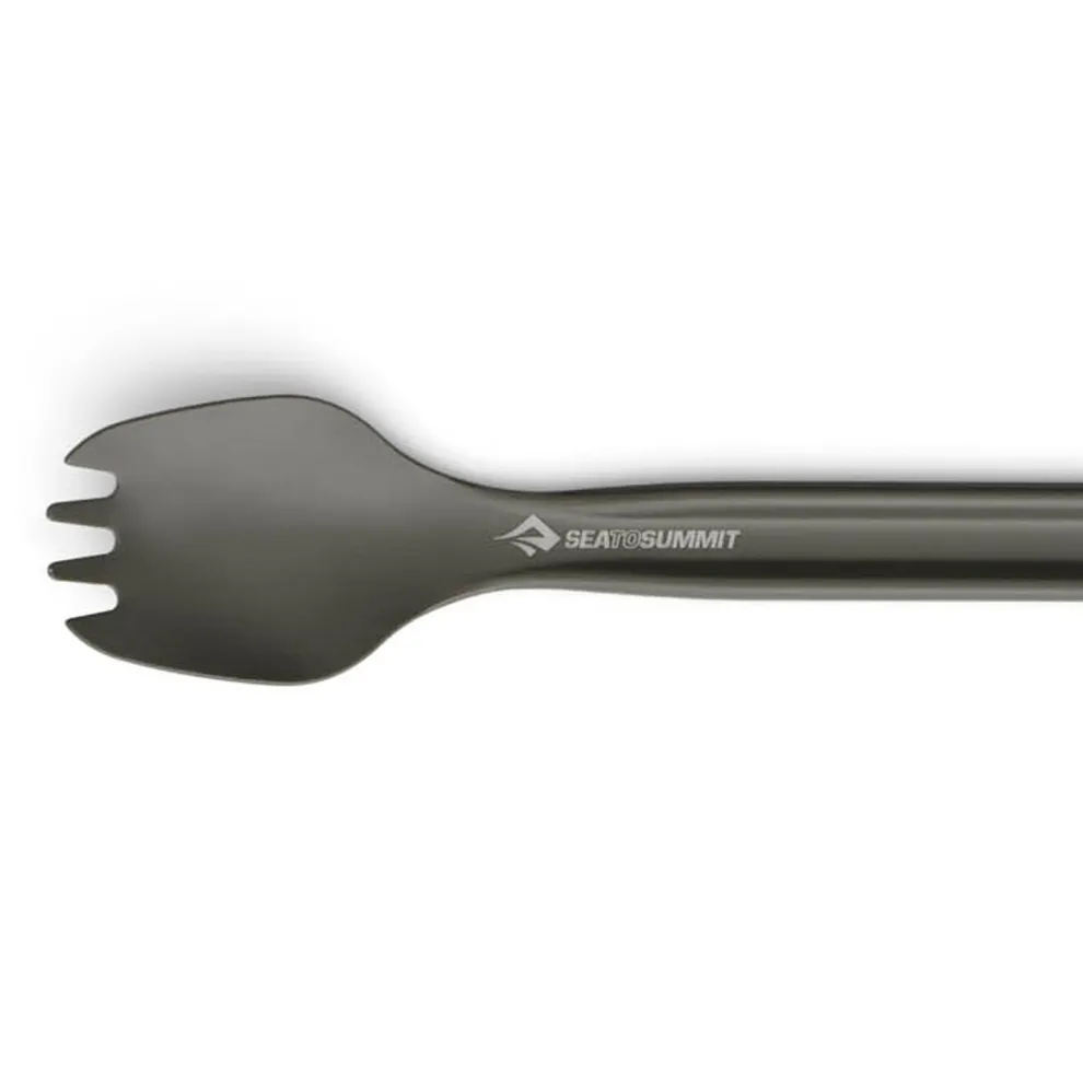 The Long Spork is our perennial best-selling utensil. It has a handle with a unique profile for strength that permits individual utensils to stack together. Food contact surfaces have a semi-polished finish for more enjoyable dining. Made of hard-anodized aircraft-grade aluminum, the Long Spork is built to go the distance.