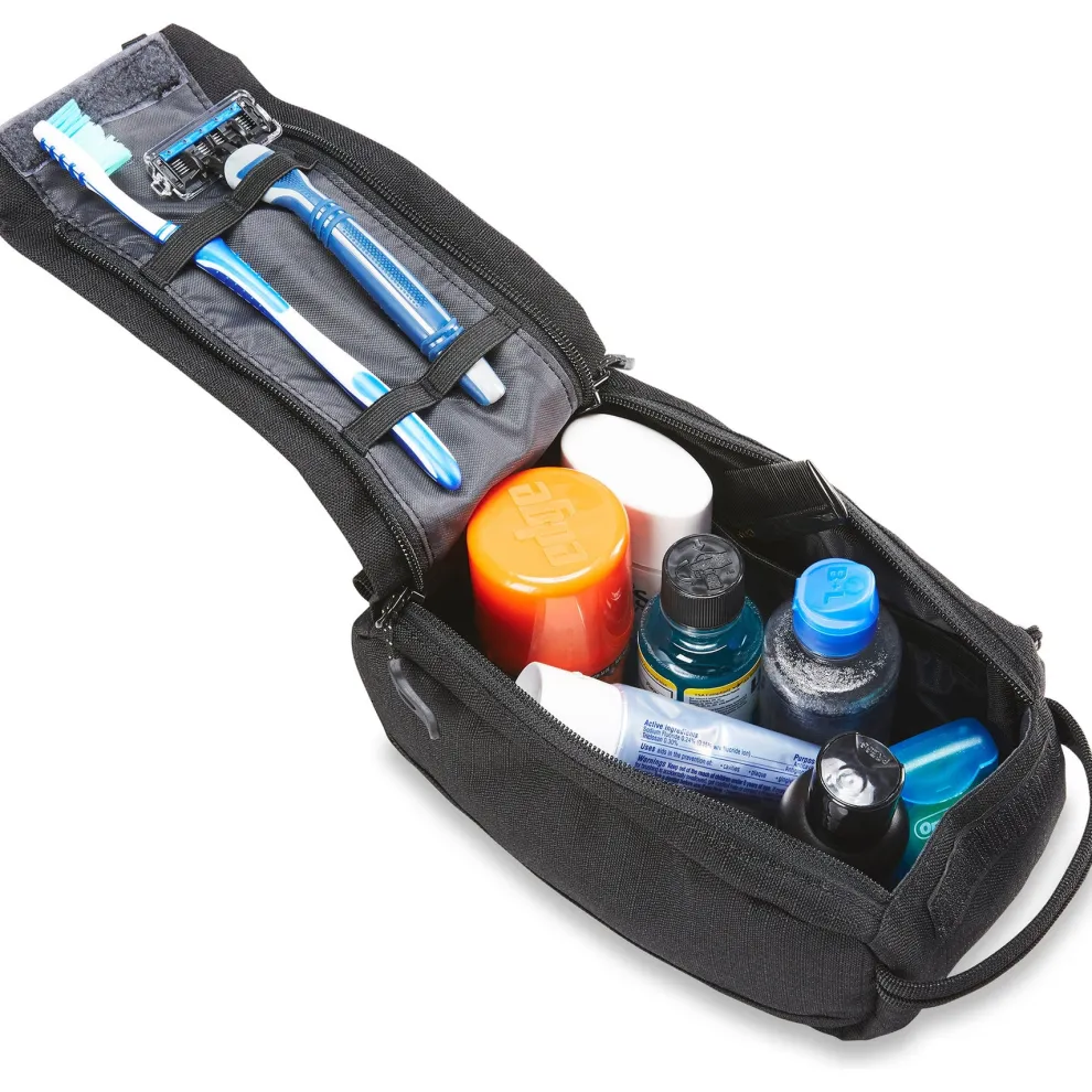 Pack and go ease. Our medium Groomer Travel Kit is sized for weekend travel. It offers a balance of space for all the essentials including shampoo, shaving cream, deodorant and more. Internal mesh pockets help keep track of the little stuff. It’s designed for easy countertop deployment with an internal daisy chain strip for keeping stuff like a razor and toothbrush at the ready.