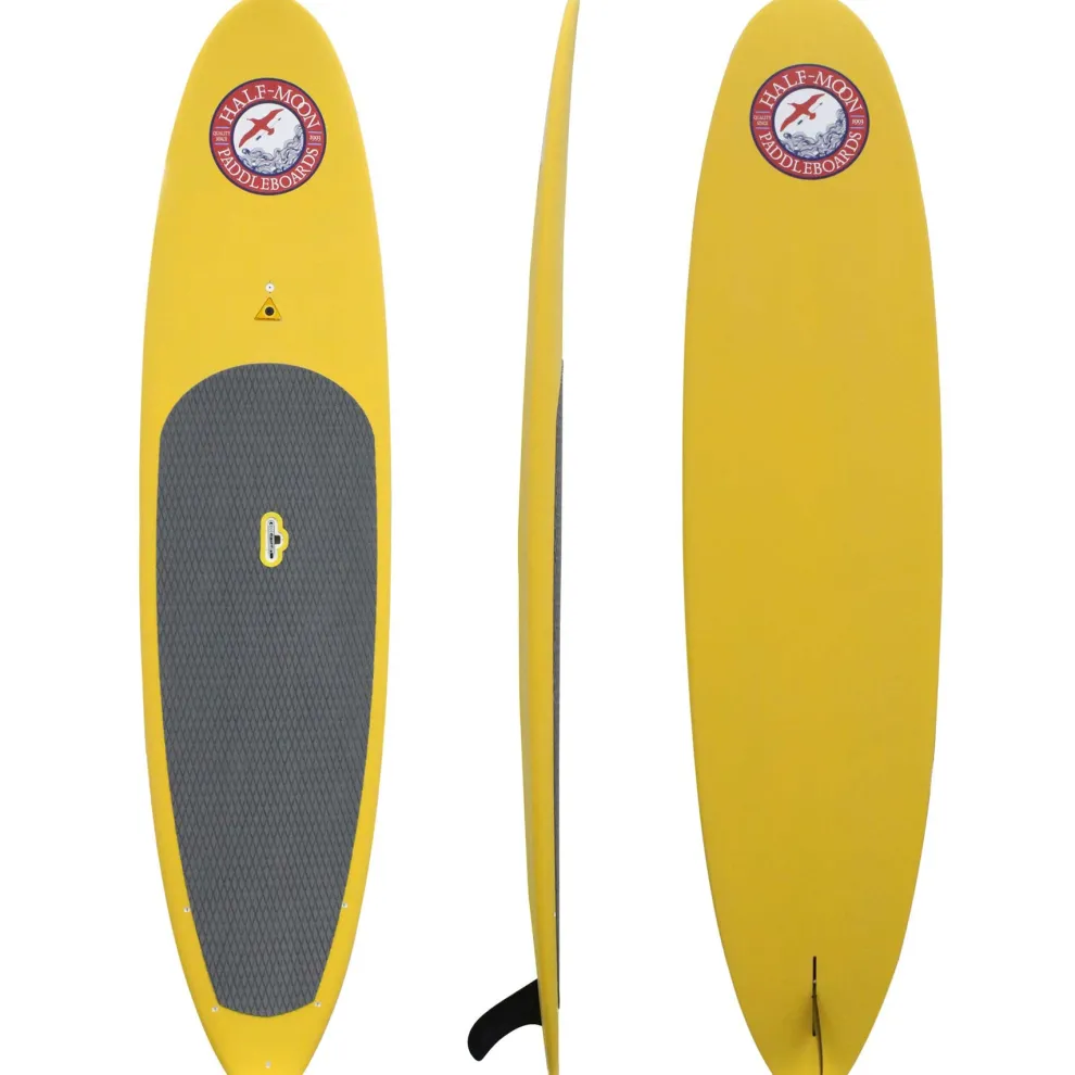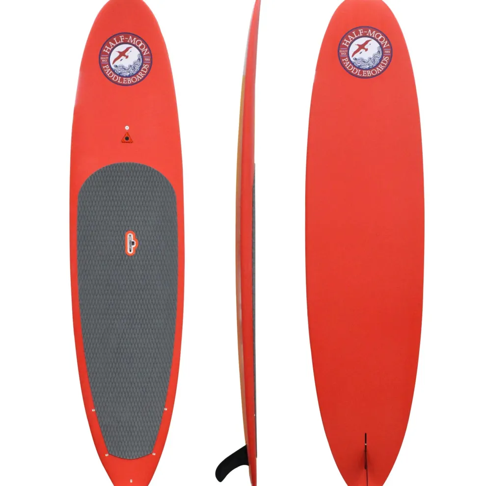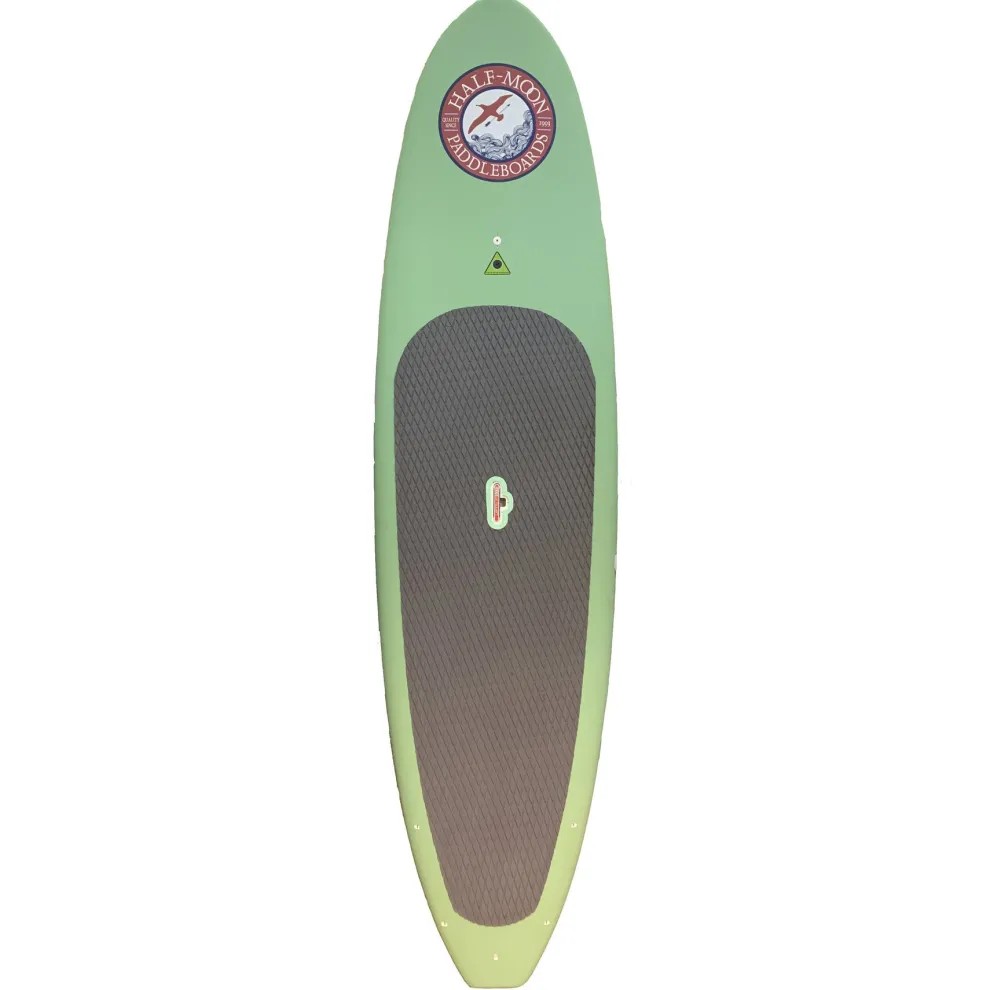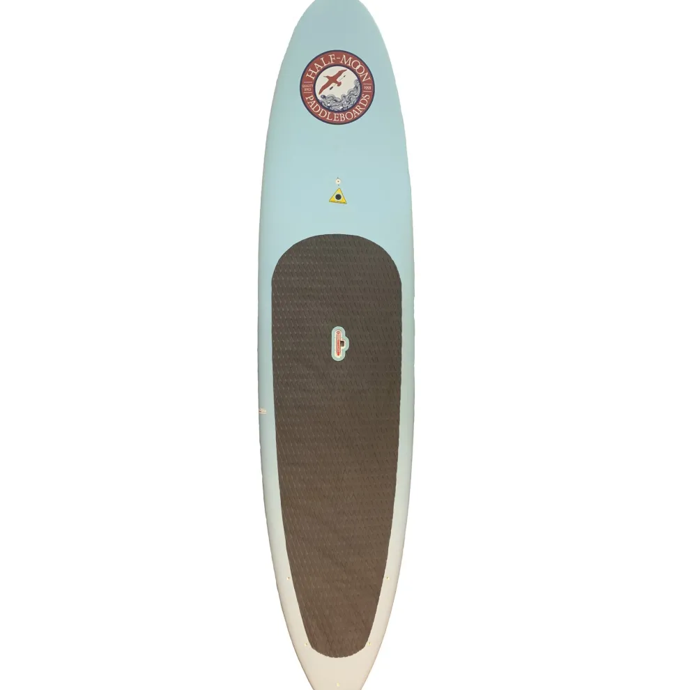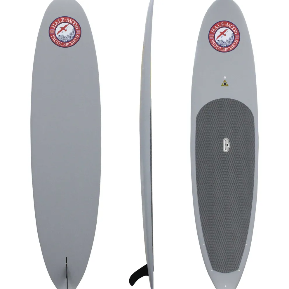 The Half-Moon 11’6″ is a performance-designed, all-around eps/epoxy construction paddle board for all types of stand up paddling including lakes (flat water), ocean surfing and even boat wake surfing for any size paddler weighing up to 250 lbs. The Half-Moon paddle boards include the most popular features of boards selling for over twice the price including, 1) a patented LiftSUP retractable handle for easy carrying and locking, 2) an integrated ConnexSUP mount on the nose (ie: for attaching accessories sold separately such as a GoPro camera, waterproof speaker, waterproof box, etc), 3) integrated bungee tie-down plugs on the tail (bungee cord not included) for taking extra cargo on board (ie: cooler, waterproof backpack etc), 4) a durable EVA/Memory Foam deck pad that keeps feet and legs comfortable while increasing stamina.