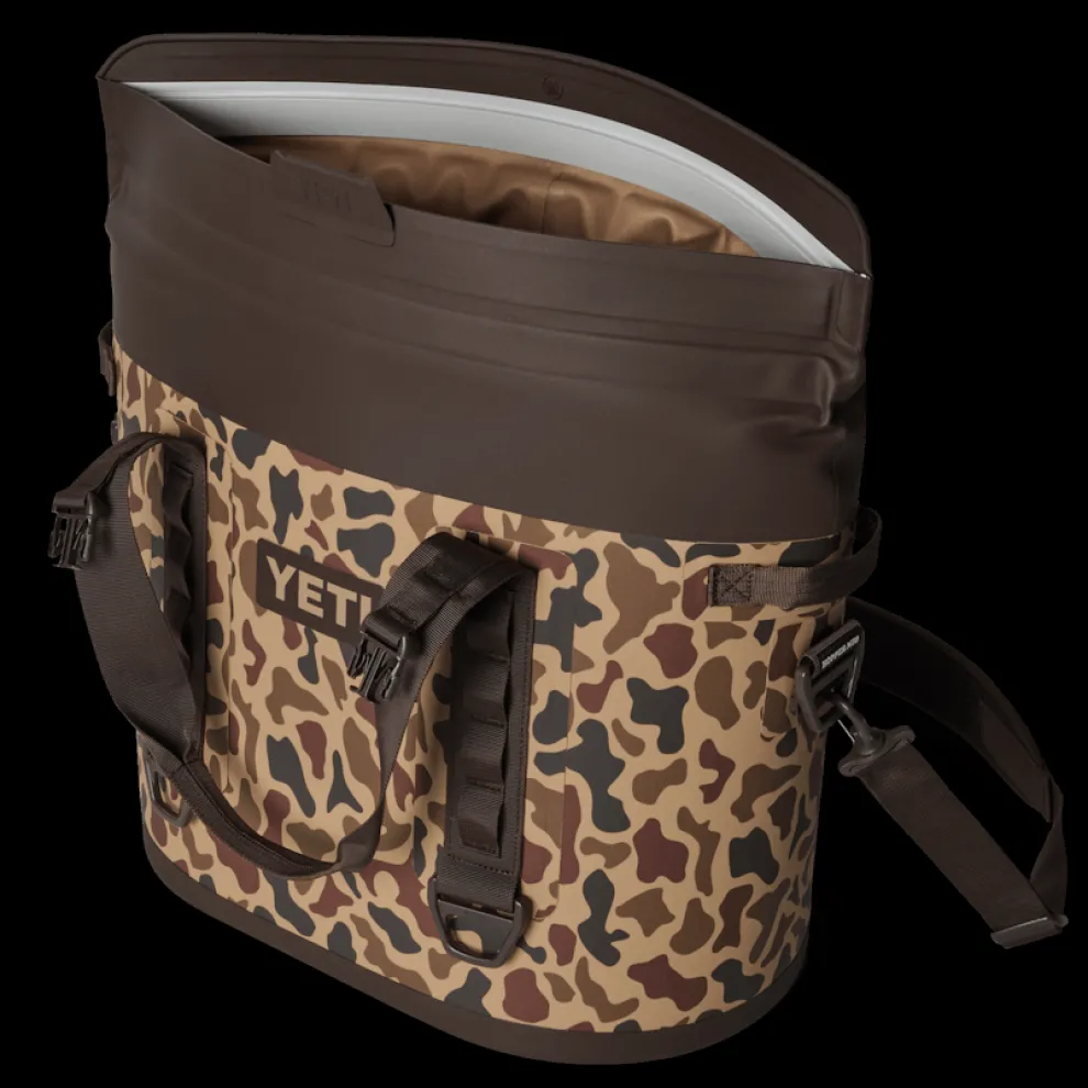 The new and improved Hopper M30 continues to shine as our tough-as-nails soft cooler. Completely re-engineered with MagShield Access, the extra-wide mouth top stays open when needed, making it easier than ever to load and unload food and drink for weekend excursions. Equipped with a strip of ultra-strong magnets, the top seals tight and locks cold in, while the Quick-Release Buckles add an extra layer of protection.