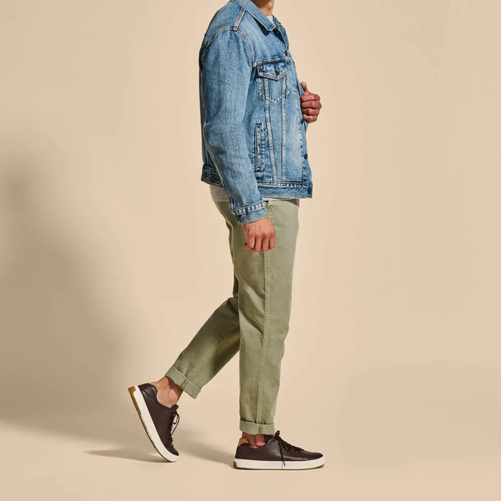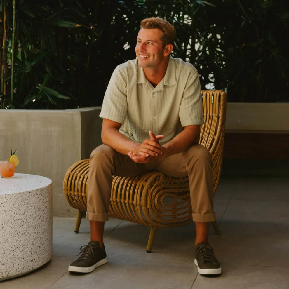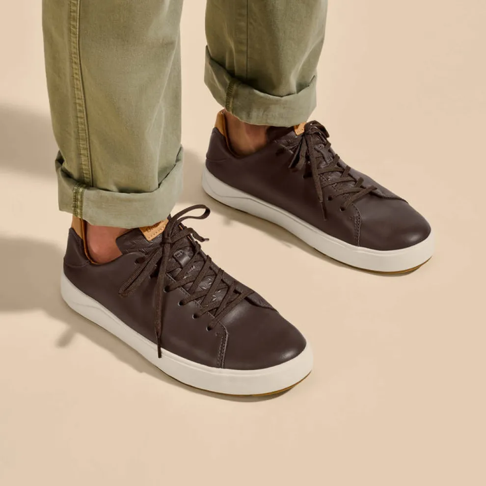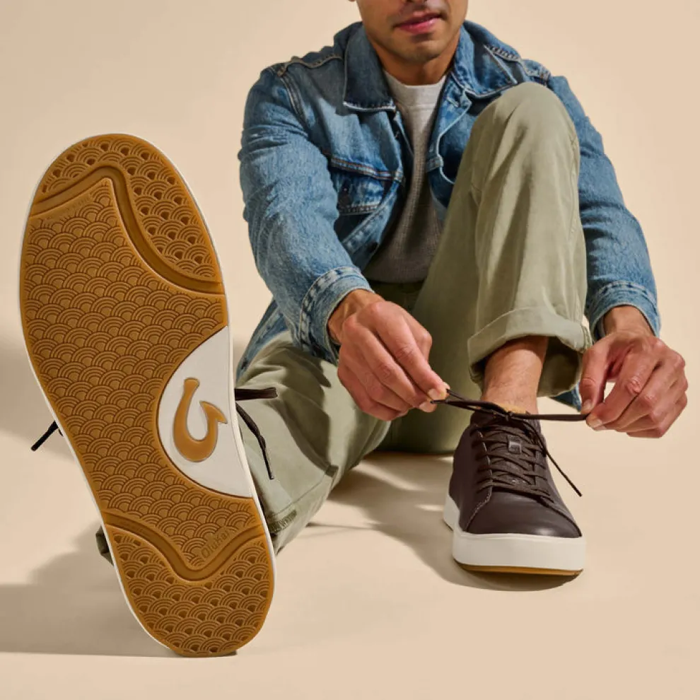 Made from premium full-grain waterproof leather, the Lae’ahi Lë ‘Ili offers a blend of style and versatility with its natural color palette. The shoe is decorated with intricate debossed Hawaiian kapa artwork on the tongue, adding a touch of OluKai craftsmanship to its classic design.