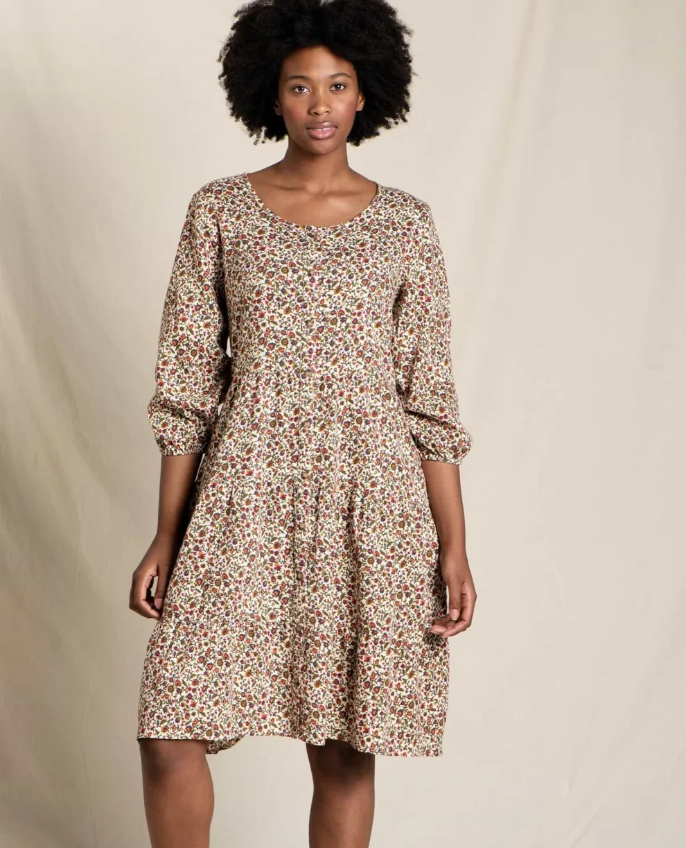 Feminine fun, minus the fuss. Our Manzana fabric is loved by all for its light-on-the-skin crepe texture and sustainable goodness (100 percent organic cotton, baby). So we decided to create a dress that can transcend all seasons: Throw on a cardi when the days turn chilly and some sandals when the sun comes out to play. One hit wonder? Not on our watch.