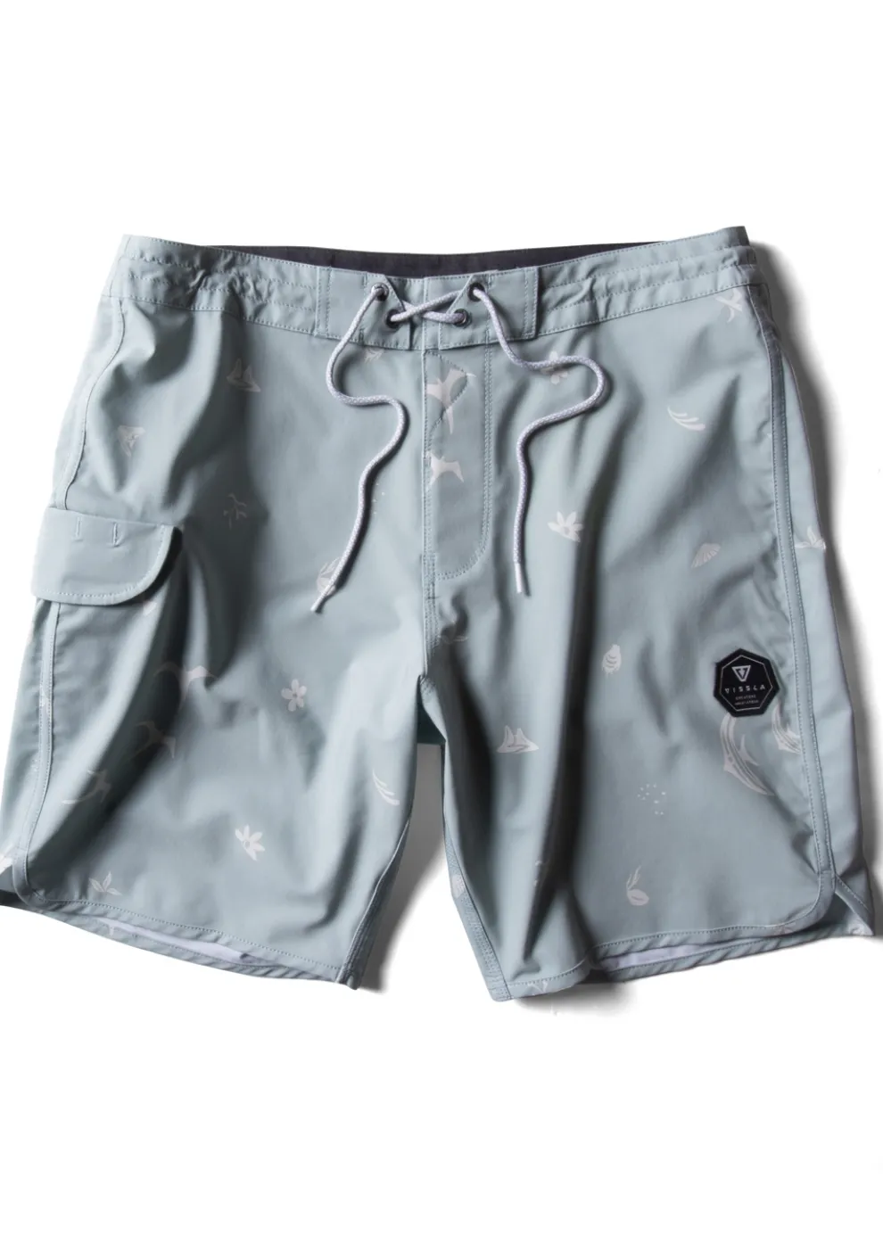 Chris Miroshito Collection 4-Way stretch boardshort made with coconut recycled poly Repreve and cotton. Scalloped hem side pocket and integrated key rope. Novelty Vissla embroidered patch at side. 18.5″ outseam.