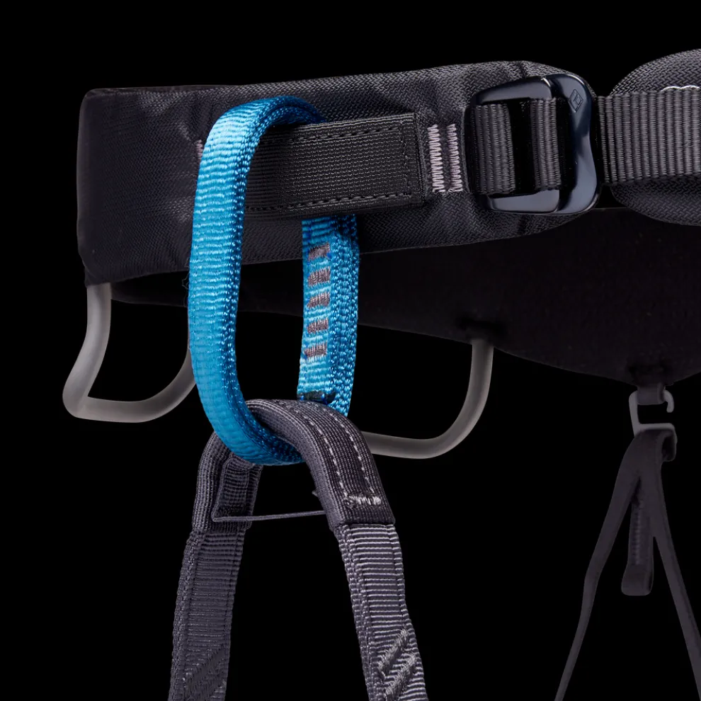 For all-around climbers who know that time spent fiddling with leg loops and adjusting a pinching waistbelt is time wasted, the Black Diamond Momentum delivers a time-saving design for all styles of climbing. A pre-threaded Speed Adjust waistbelt buckle saves time and eliminates error when tying in, while Dual Core Construction™ puts an emphasis on comfort, even when you’re posted up at a hanging belay. TrakFIT leg-loops easily adjust for cool fall days at the crag or blazing summer days on long multi-pitches, and four pressure-molded gear loops and a haul loop make this our most popular all-rounder.