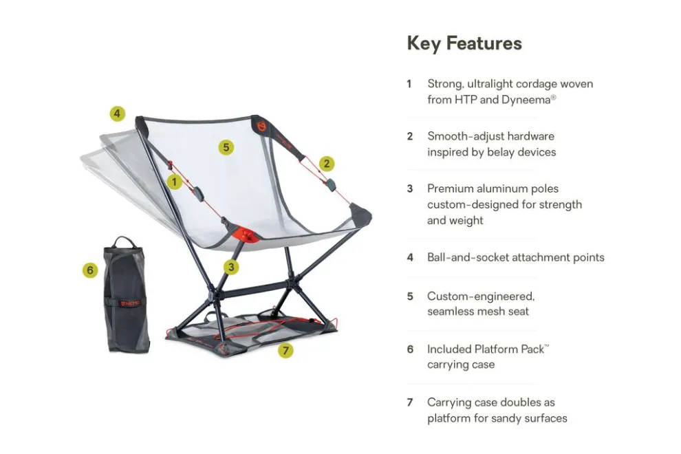 Weighing in at just 1.1 pounds, the Moonlite™ Elite reclining backpacking chair eliminates any excuse to leave comfort behind when you hit the trail. Offering both reclining suspension and stable support, Moonlite Elite features innovative design solutions that remove unnecessary weight and help the chair nest easily in your pack.