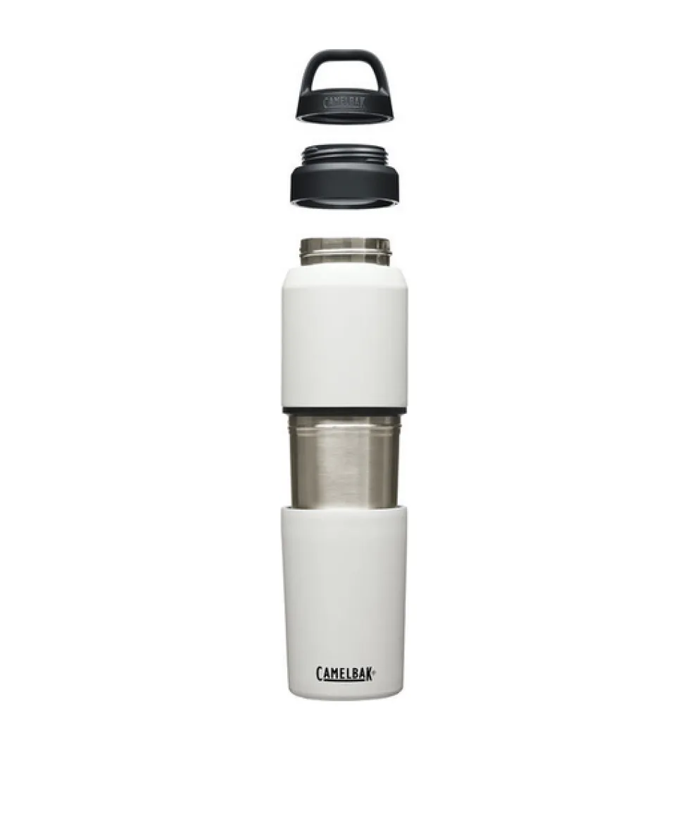 The ultimate beverage multi-tasker for on-the-go sustainability and versatility. MultiBev is a 2-in-1 vessel that serves as both a water bottle and detachable travel cup for convenience you can carry. Use for coffee in the morning, water throughout the day, and camp-out beers with friends at night. Drink. Share. Rinse and repeat. Double wall vacuum insulated stainless steel keeps beverages hot or cold for hours. A powder coat finish and non-slip silicone base create a highly durable exterior. The leak-proof Pak™ Cap tucks the Roll and Fold Lid neatly out of sight until paired with the removable cup, or stores small essentials like a tea bag or snacks. Easy-to-clean, dishwasher safe design, and BPA, BPS & BPF free. Feel good about choosing a sustainable solution to disposable waste.