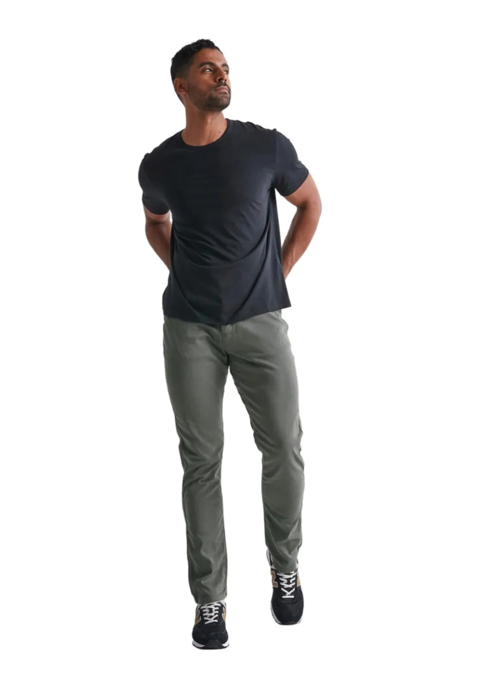 As comfortable as a sweatpant with the look of a pant. Mid-rise with a relaxed fit through the hip, and slight taper at the hem.
