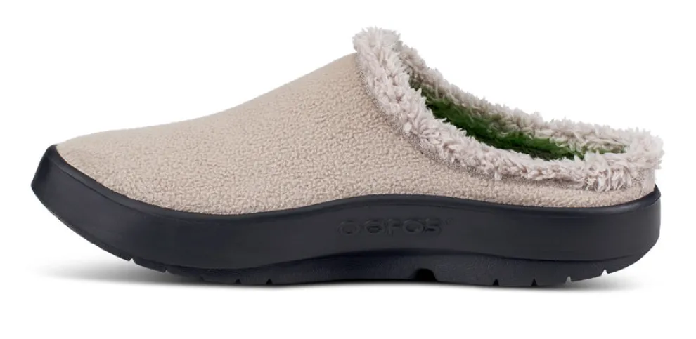 The OOcoozie provides the perfect blend of cushion and stability for both indoor lounging and quick errands out. Now in a mule style with an easy, no fuss, slip-on design for your on-the-go lifestyle. The upper is constructed with a warm vegan sherpa material that is both recyclable and machine washable. Like all OOFOS products, it has our unique one-of-a-kind OOfoam™ technology that absorbs impact, so your body doesn’t have to. Active recovery with the soft, cozy warmth you desire in a versatile hygge style.