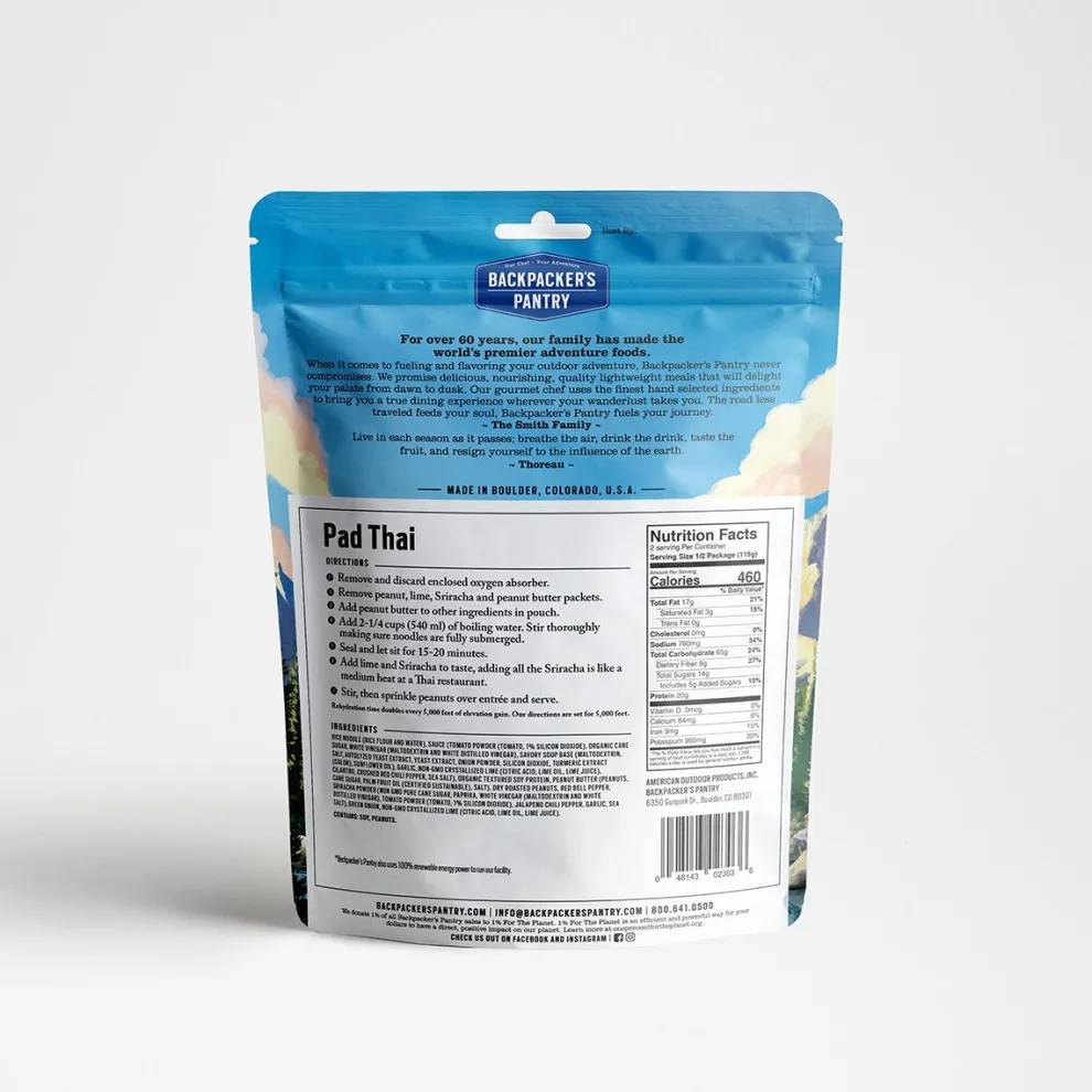 Bring the flavors of your favorite Thai restaurant out into the wilderness with our vegan and gluten free pad thai dish. Rice noodles and veggies are blended together with a spicy, sweet, and addicting garlic sauce. We’ve even included roasted peanuts for added texture and flavor it’s all about the details. The best part? All that stands between you and your Pad Thai is some boiling water and a bit of time.