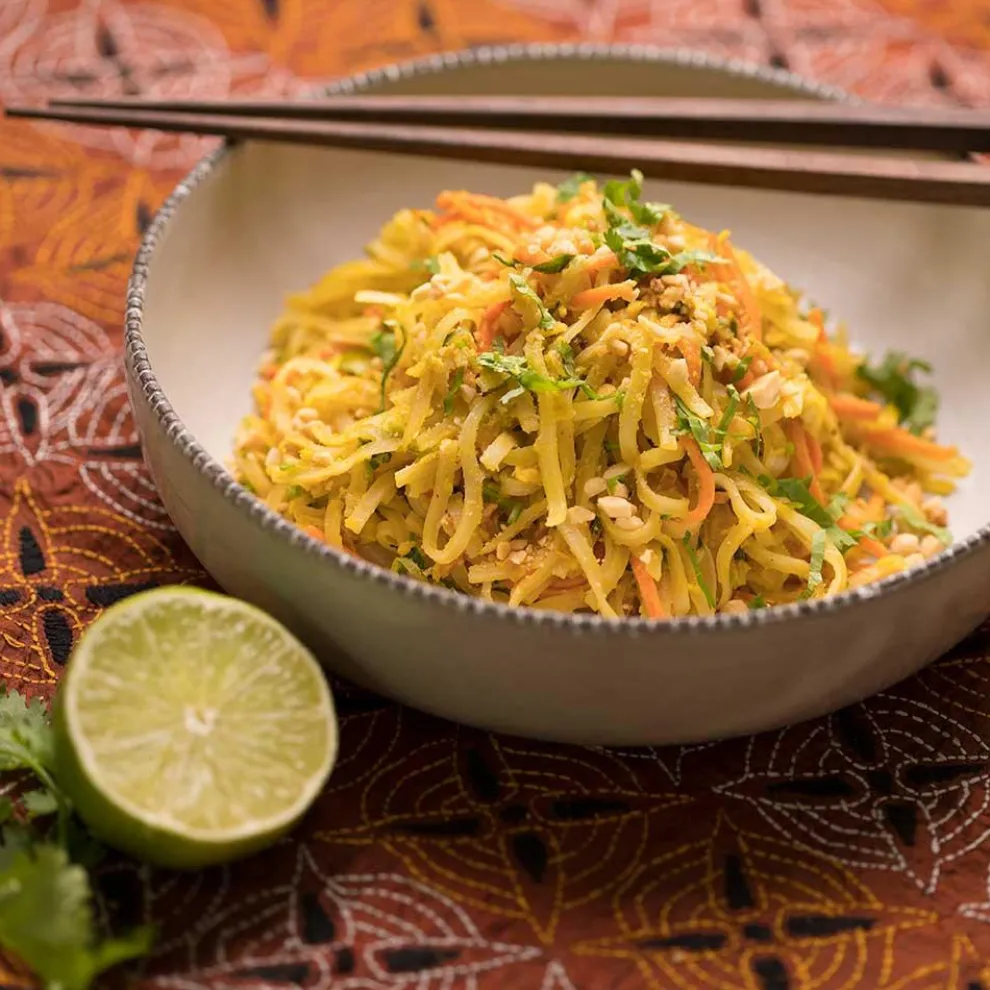 Our version of this quintessential Thai dish captures the four Thai flavors of sweet, salty, sour and spicy. Traditional Banh Pho rice noodles are served with carrots, bean sprouts and peanuts in a flavorful wild American shrimp sauce.