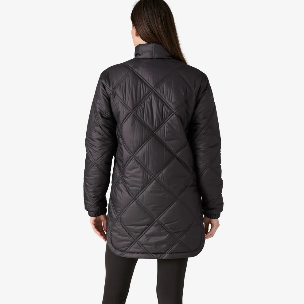 Warm, sporty and detailed, the Pine Bank Insulated Parka is built of 100% recycled polyester ripstop with a DWR (durable water repellent) finish that’s made without perfluorinated chemicals (PFCs/PFAS), and insulated with 100-g Thermogreen® 100% recycled polyester. Diamond quilting and a scalloped hem make for a flattering silhouette that’s great for layering during transitional seasons. Made in a Fair Trade Certified™ factory.