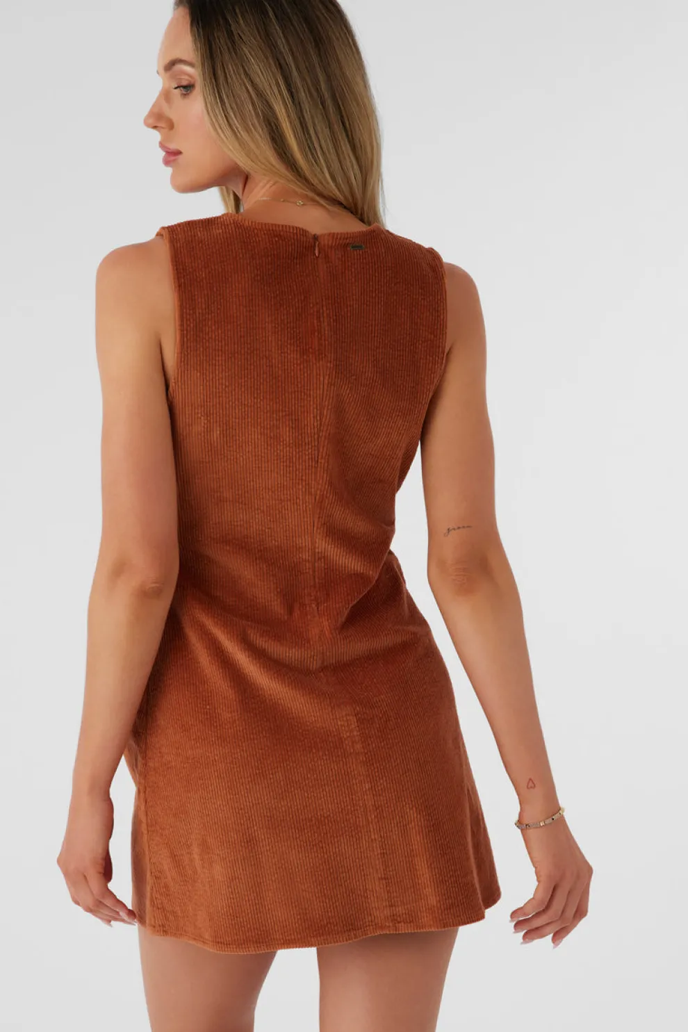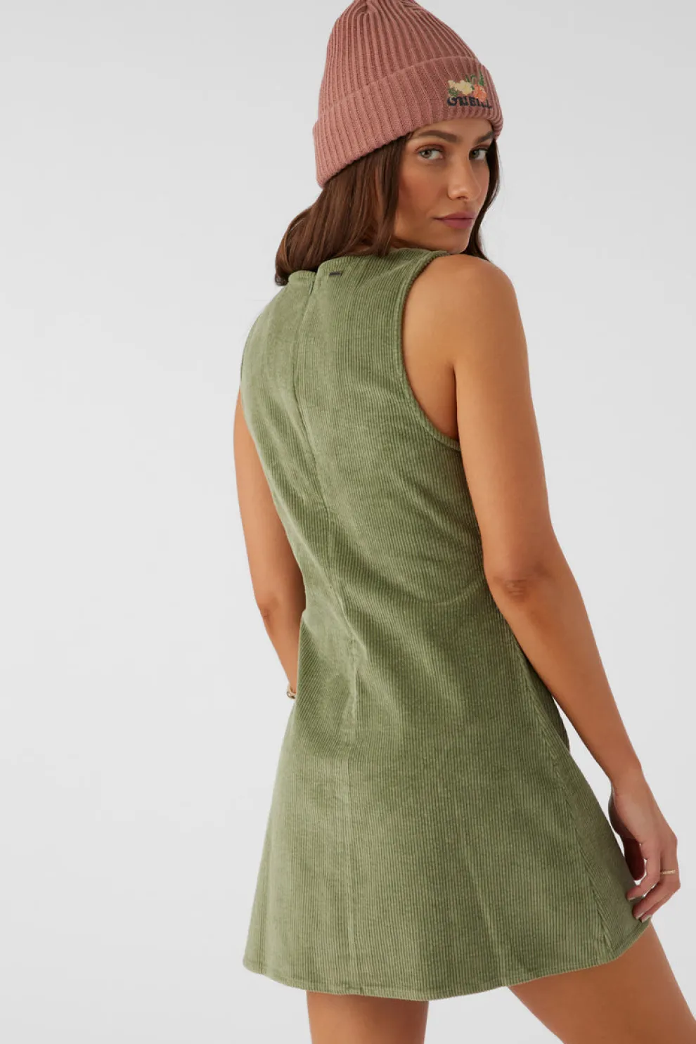 Essential corduroy mini dress that has a v-neck design, premium feel and solid color wash.